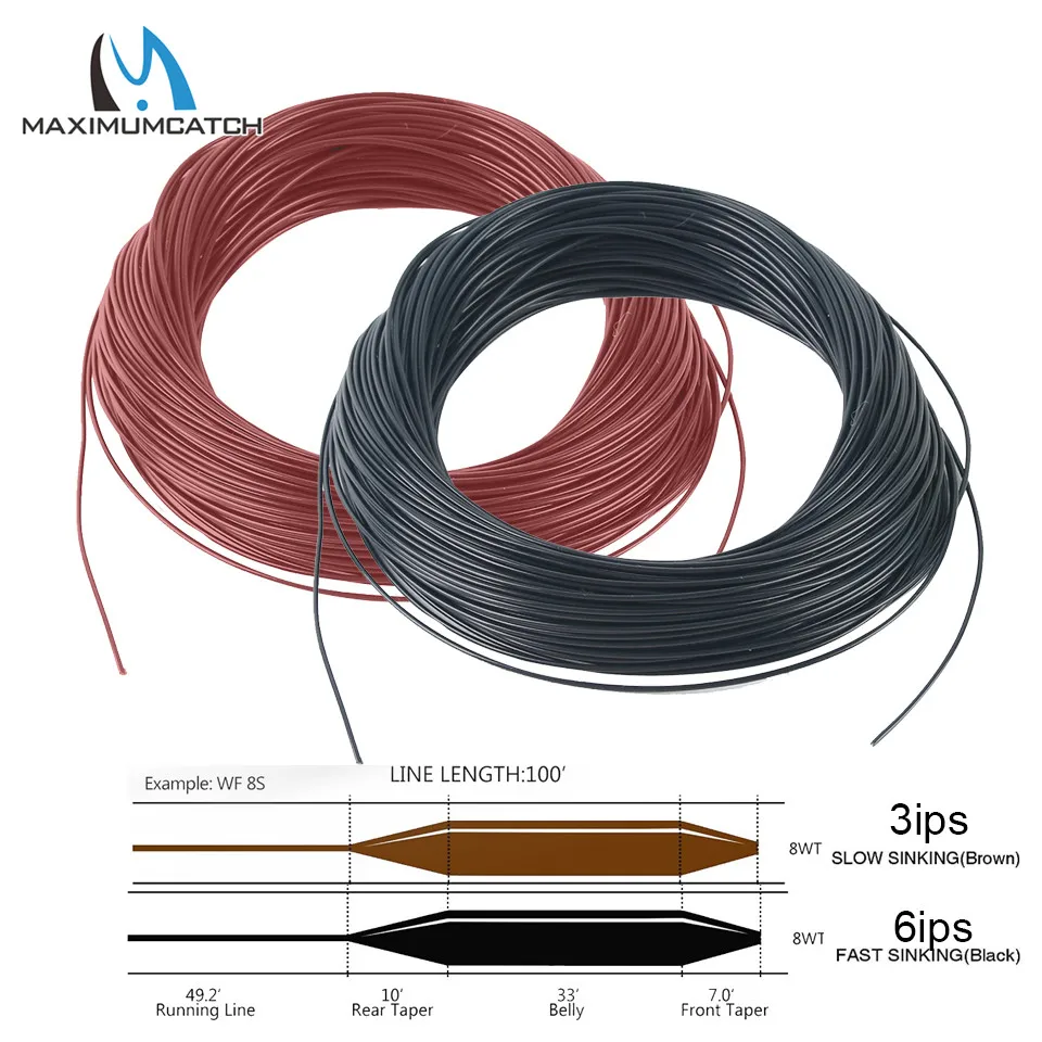 Special Offer Maximumcatch 100ft 4 9wt pośrednia szybko tonąca mucha wędkarska waga do przodu wyczyść niebieski brązowy czarny kolor żyłka Discount 41% Today!
