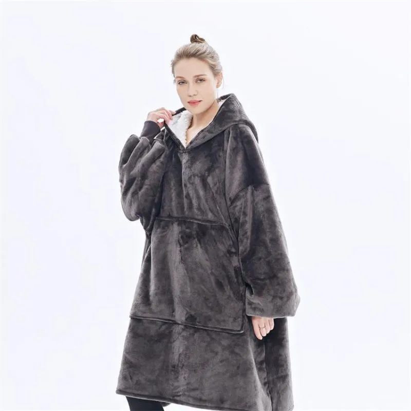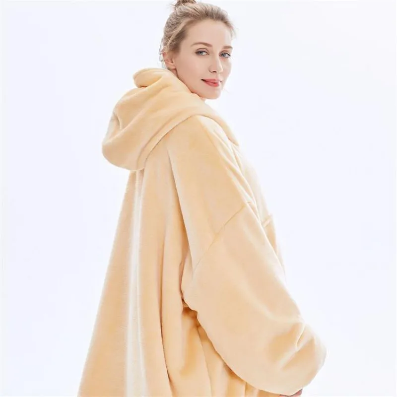 Product Name: Zimowe koce z kapturem i kieszeniami na zewnątrz ciepłe miękkie skośne szaty szlafrok bluza pulower TV koc z polaru z rękawami
