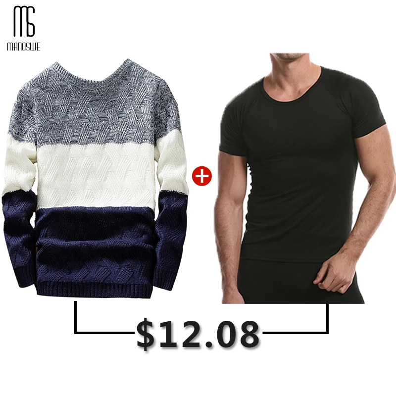 Special Offer Manoswe Casual długi rękaw jesienno zimowy sweter męski w stylu koreańskim slim, dziany niebieski sweter sweter Jumper Fashion Christmas Discount 35% Today!