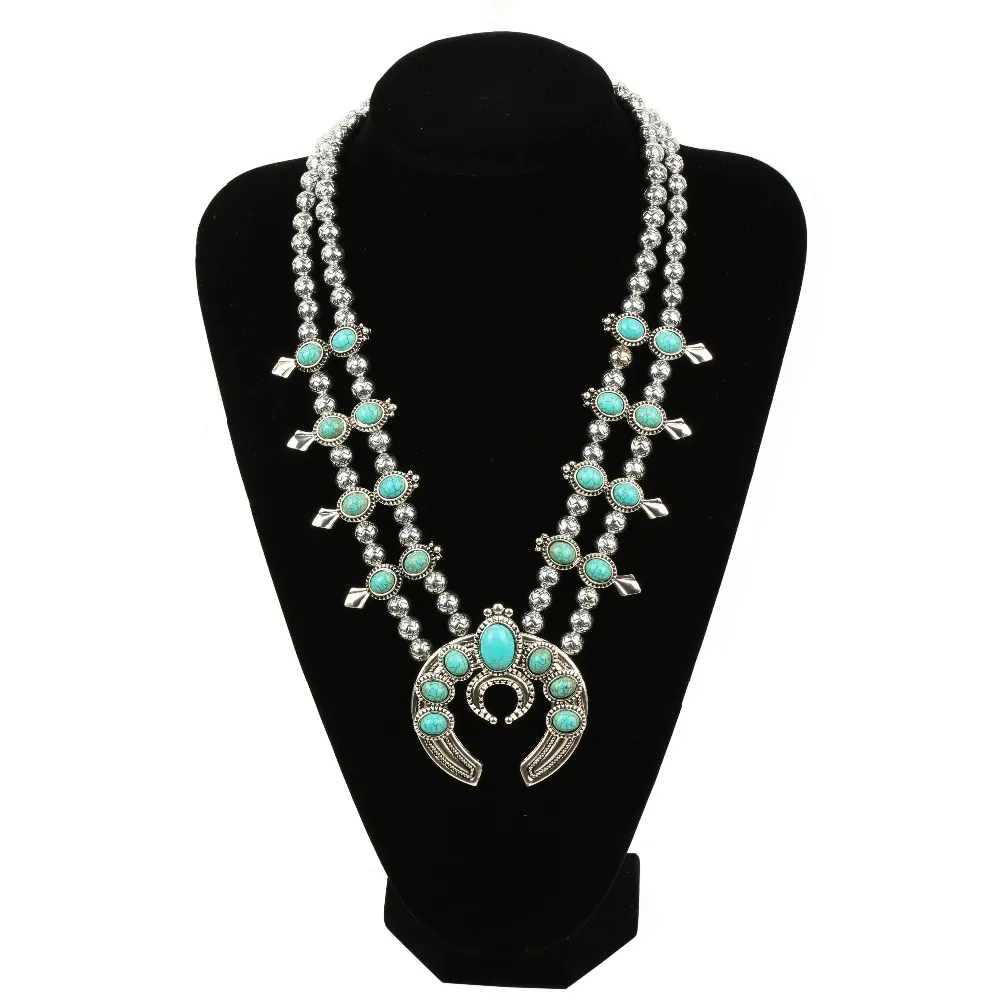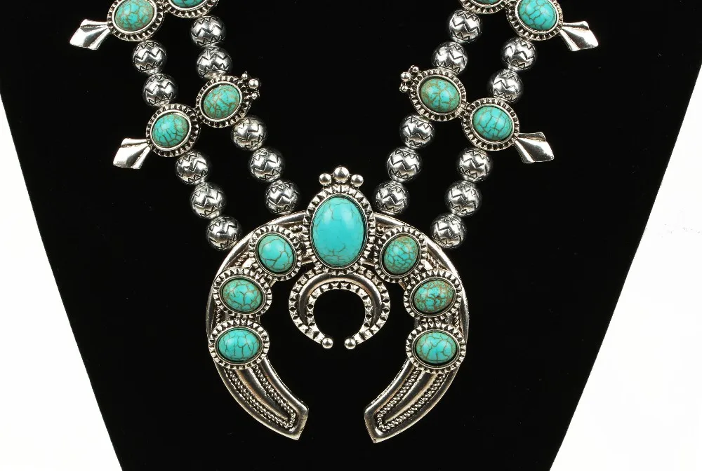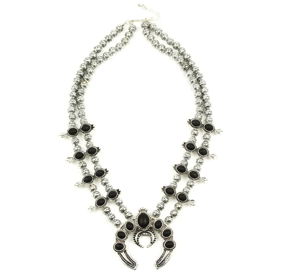 Product Name: Sprzedam naszyjnik kwiatowy z dyni, Vintage srebrny z kamieniami naszyjnik z kwiatem squasha N21789