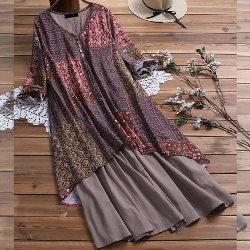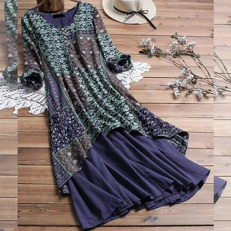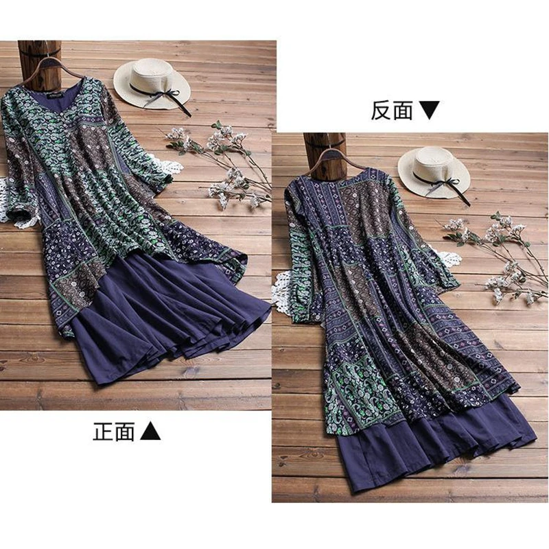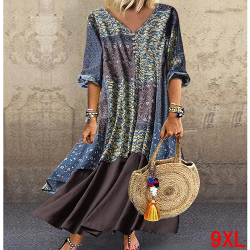Special Offer Wielkoformatowa damska sukienka bawełniana i nadruk na tkaninie lnianej plus rozmiar 5XL 6XL 7XL 8XL 9XL letnia dekolt w serek z długim rękawem luźny niebieski strój Discount 0% Today!