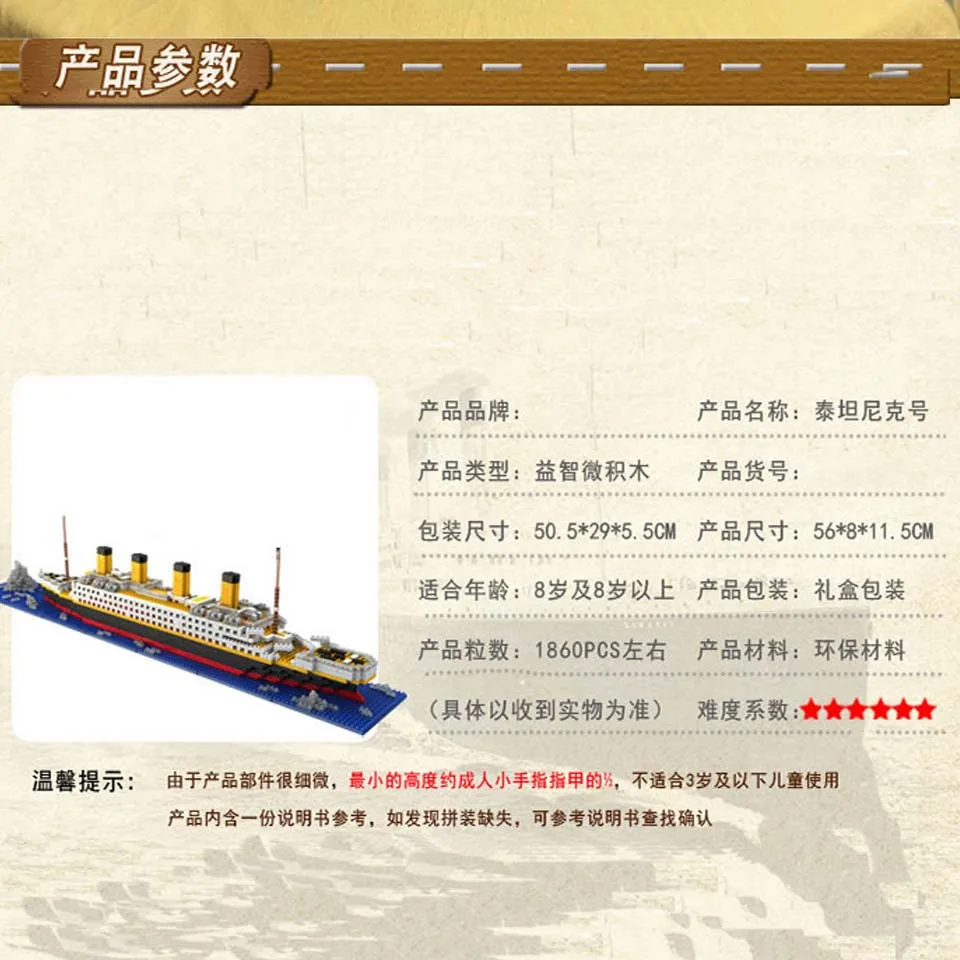 Product Name: LOZ 1860 sztuk titanic cruise model statku łodzi DIY diament legoinglys klocki klocki zestaw zabawek dla dzieci
