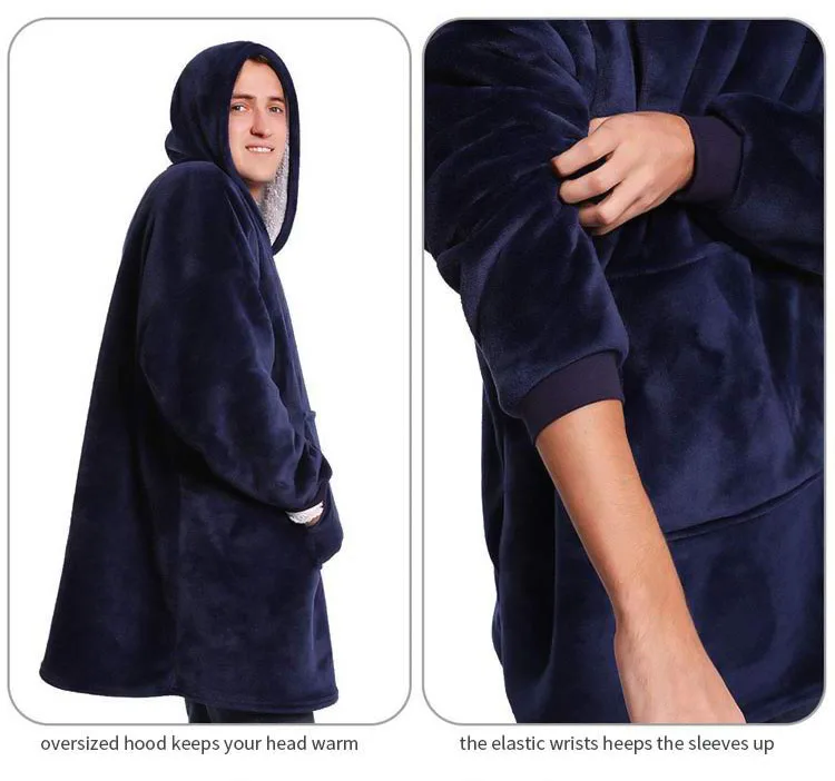 Product Name: Zima na zewnątrz z kapturem i kieszeniami koce ciepła miękka bluza z kapturem skośna szata szlafrok bluza pulower TV koc z polaru z rękawami