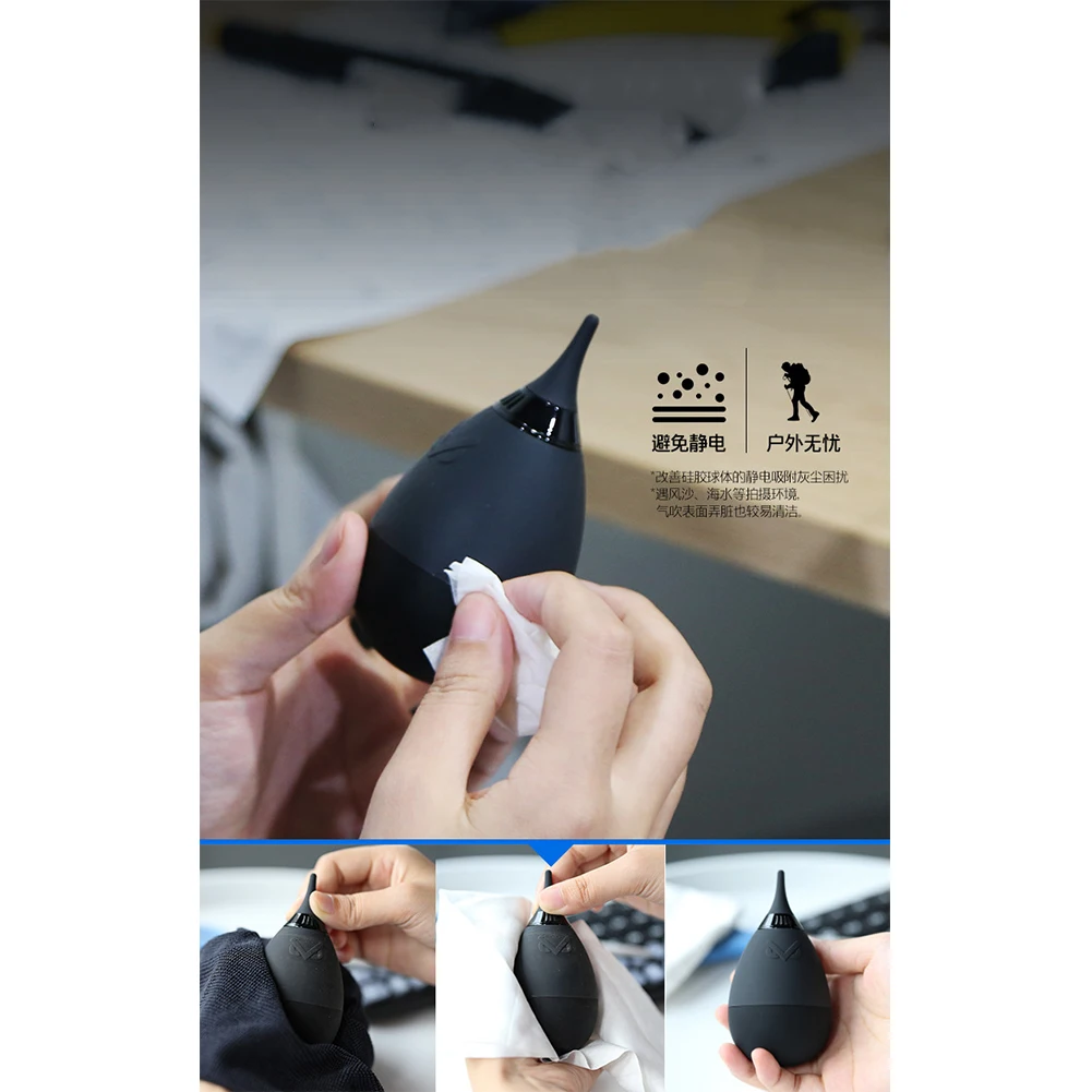 Product Name: Trwałe dmuchawy powietrza Blaster czyszczenie silikonowe siebie prostowania potężny gospodarstwa domowego filtrowane małe czarne narzędzie do VSGO DSLR