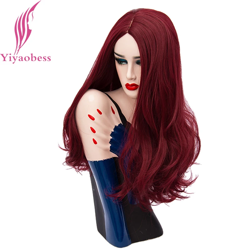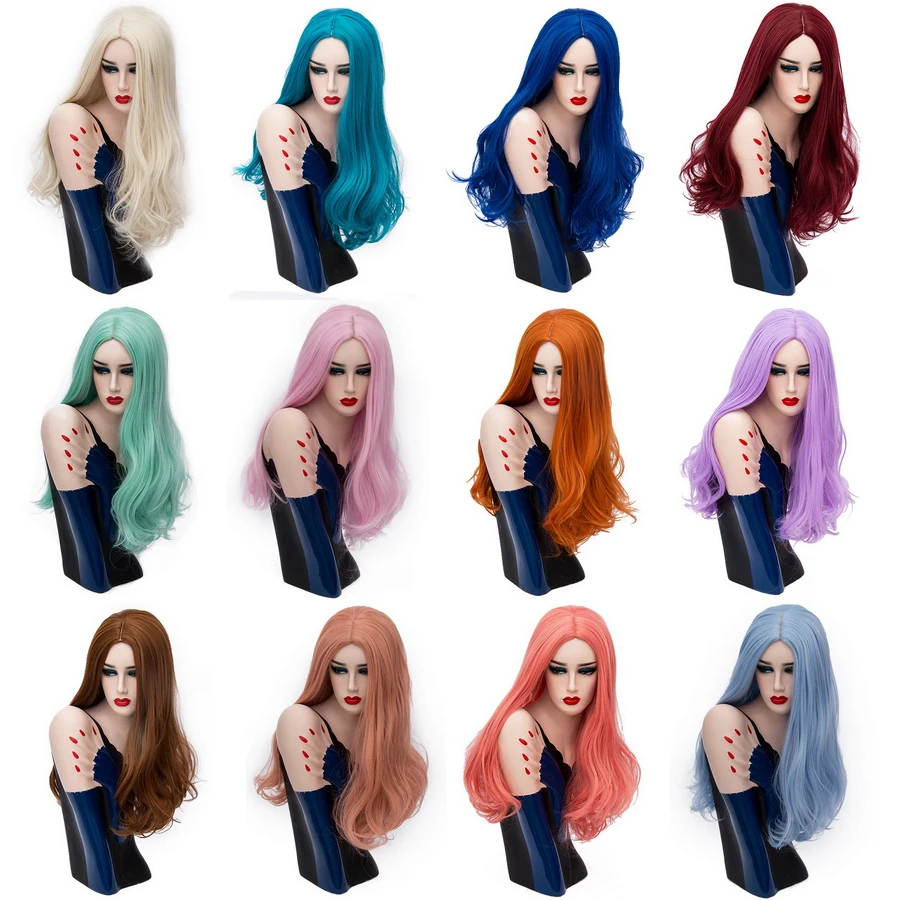 Product Name: Yiyaobess 24 cal złoty pomarańczowy niebieski różowy fioletowy zielony naturalne długie faliste peruki Cosplay peruki dla kobiet włosy syntetyczne 19 kolory