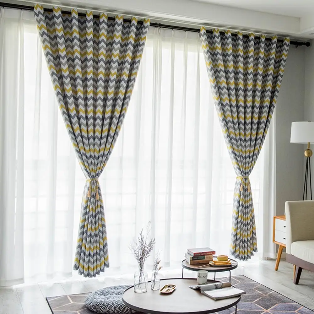 Special Offer Topfinel geometryczna fala zasłony zaciemniające do salonu z nowoczesnym nadrukiem żółty niebieski ozdoba okna zasłony zasłony do sypialni Discount 35% Today!