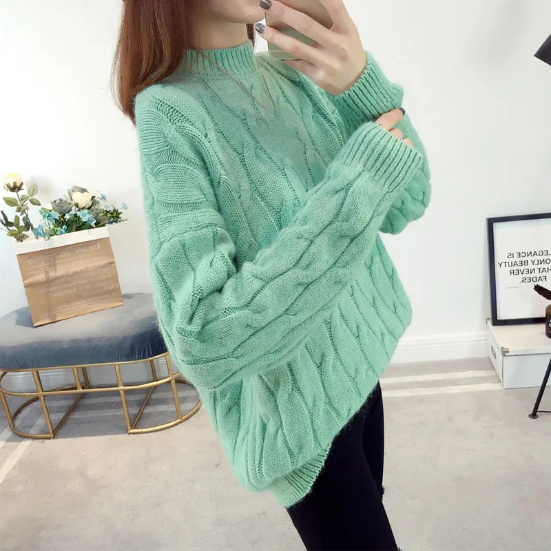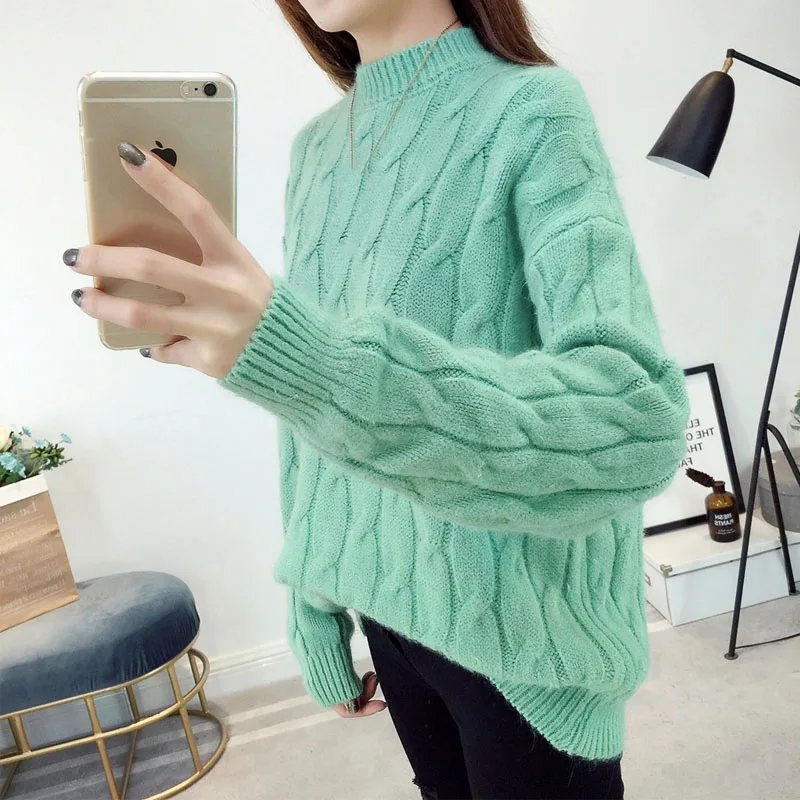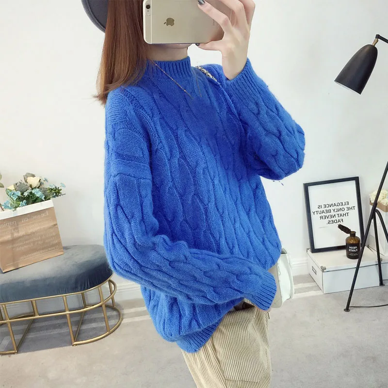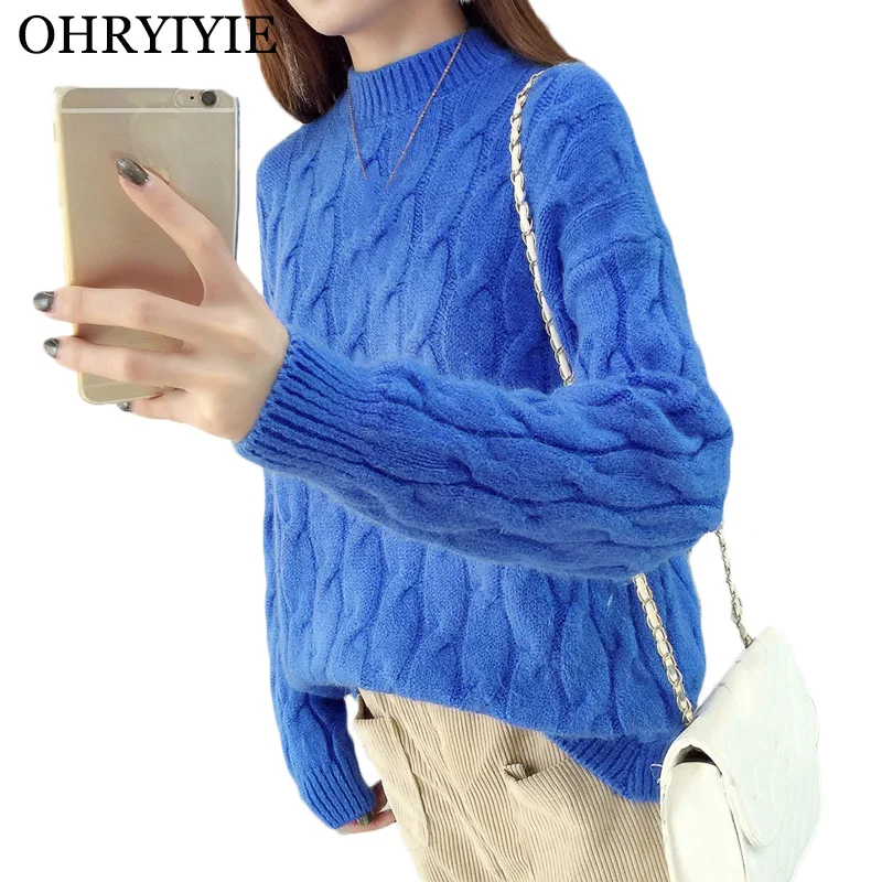 Special Offer OHRYIYIE niebieski O Neck skręcone sweter kobiet 2019 jesień zima moda z długim rękawem kaszmirowe swetry kobiet sweter z dzianiny topy Discount 43% Today!