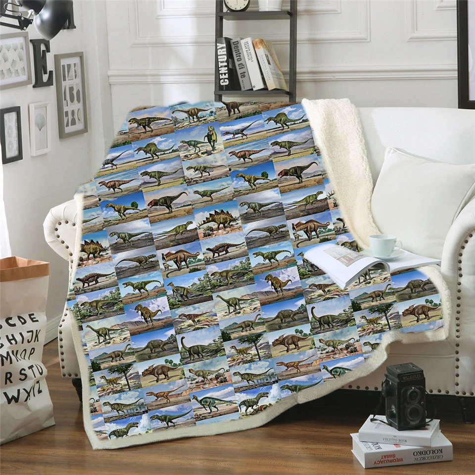 Special Offer Jurajski dinosaur drukowane koc z kapturem tkanina sherpa, polar nadające się do noszenia pluszowy koc ozdobny pluszowy koc Cartoon B1016 Discount 51% Today!