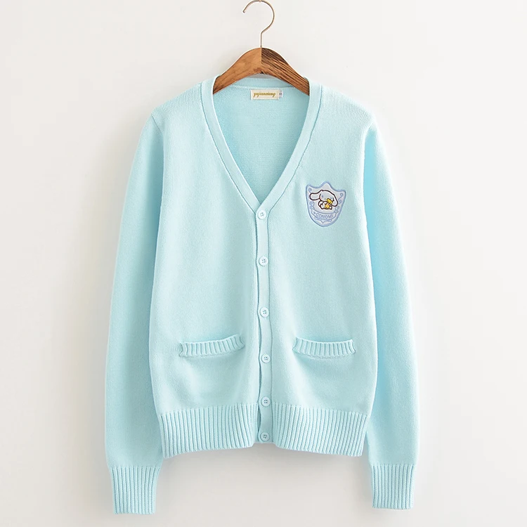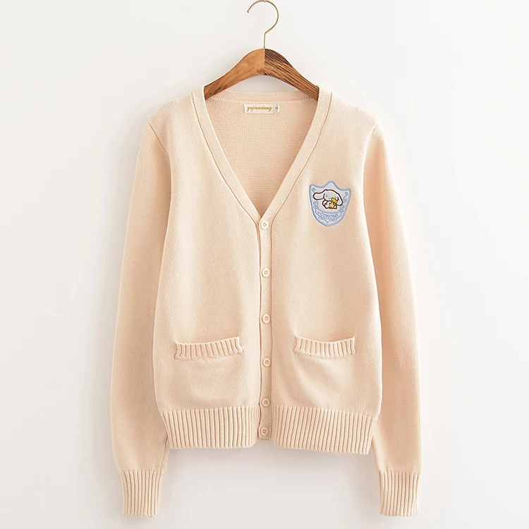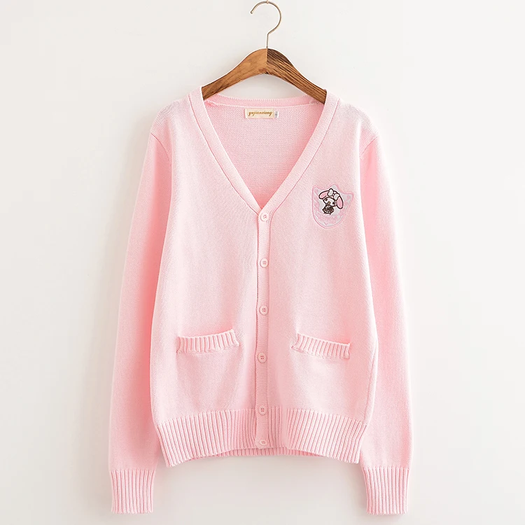 Special Offer Cartoon haft duże ucho pies wiśnia różowy migdałowy głęboki niebieski z miękkiej dzianiny bawełniany sweter z długimi rękawami sweter jednolity cos JK Discount 6% Today!