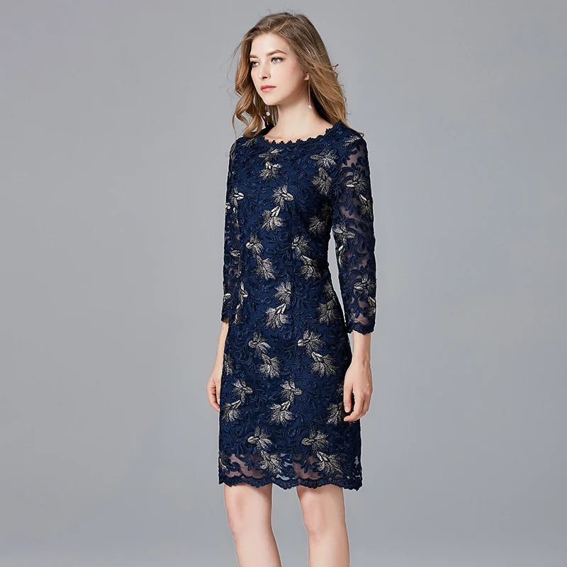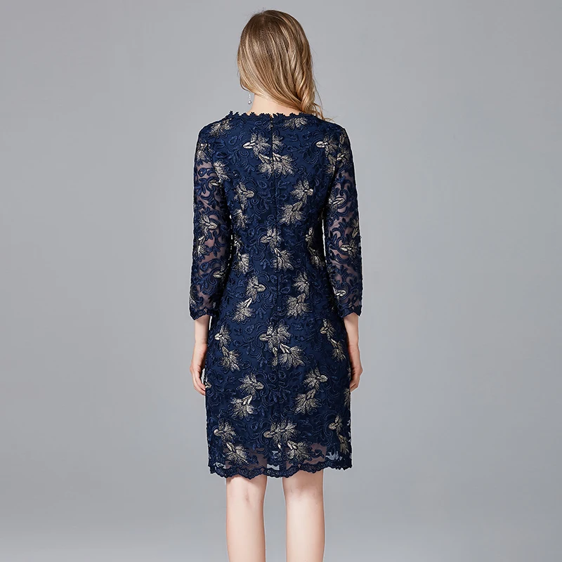 Product Name: MUSENDA Plus Size kobiety elegancki niebieski haft koronkowa tunika Midi sukienka 2018 jesień panie biuro firm sukienek odzież