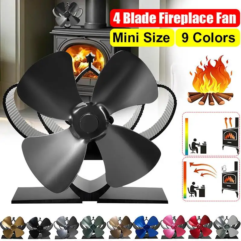 Product Name: Mini kominek 4 ostrze wentylator zasilany ciepłem komin Log palnik drewna przyjazne dla środowiska cichy wentylator domu wydajny rozkład ciepła