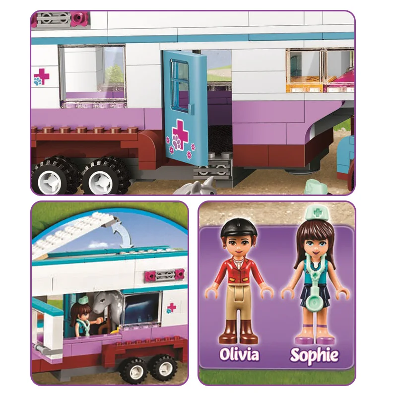 Product Name: 10561 Friends Series Horse Vet przyczepa samochodowa Model klocki budowlane kompatybilne z Legoinglys Friends 41125 na prezenty
