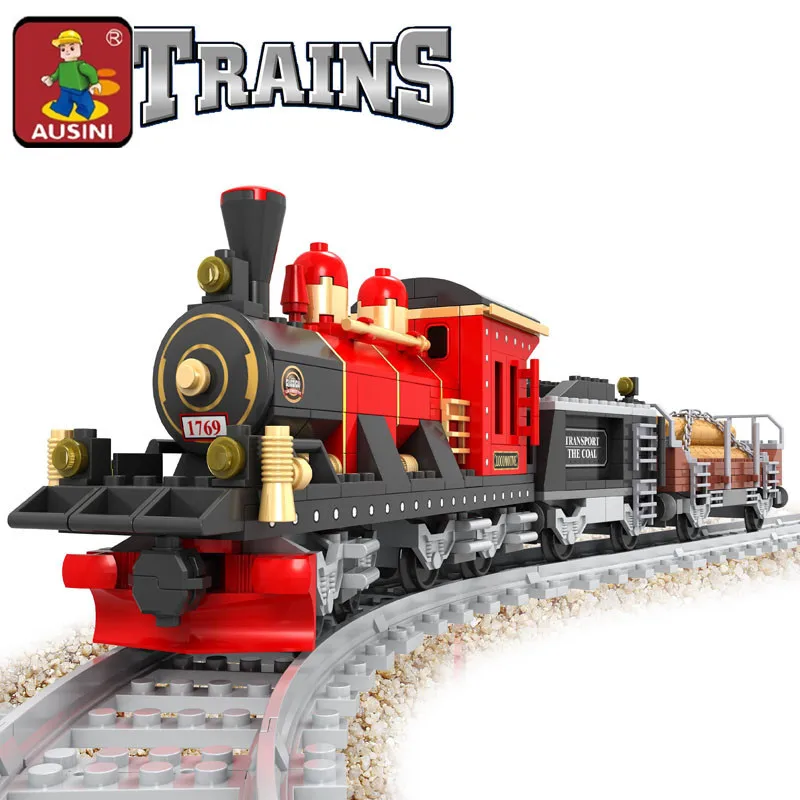 Product Name: AUSINI 2018 nowy 410 sztuk pociąg parowy klocki Retro pociąg dzieci model edukacyjny cegły zabawki brinquedos diy zabawki 25705