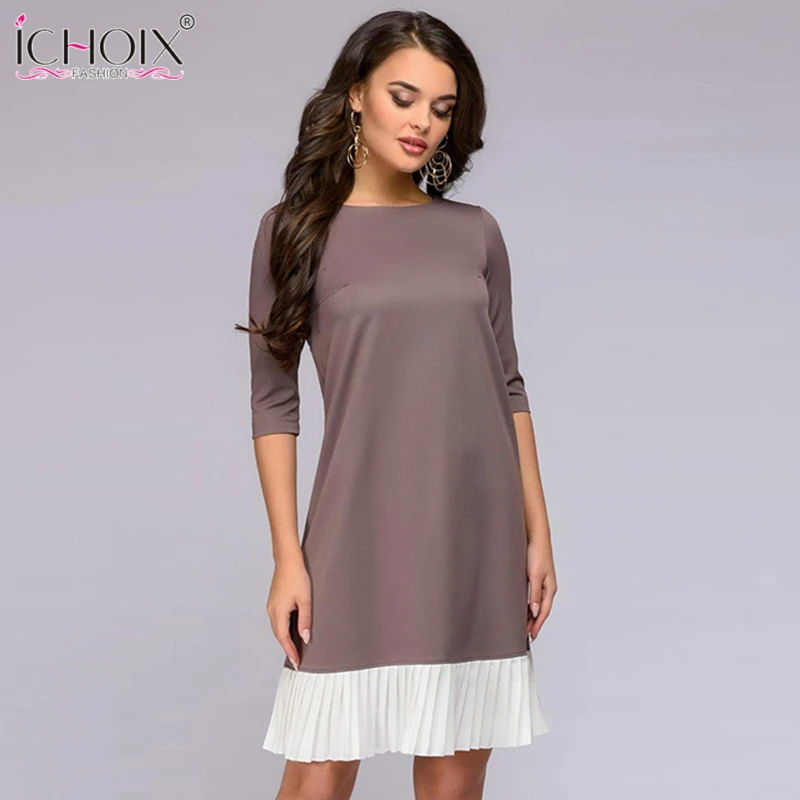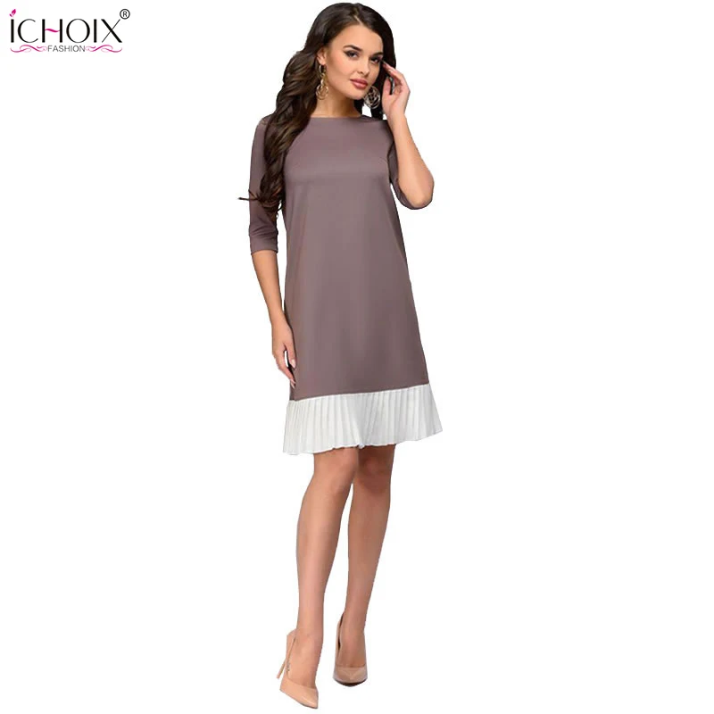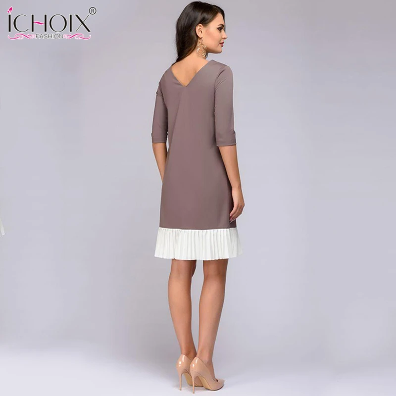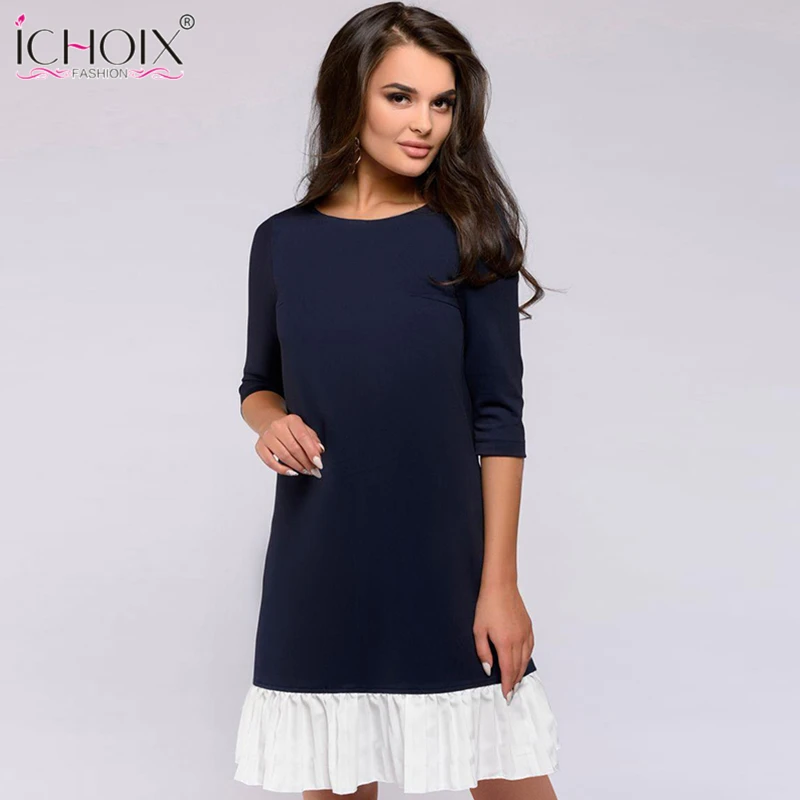 Product Name: 2019 letnia odzież do pracy sukienka modne niebieskie Khaki Patchwork Casual Style prosta krótka sukienka biuro pół rękawa O Neck Mini sukienka