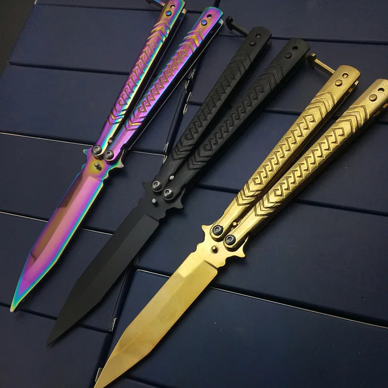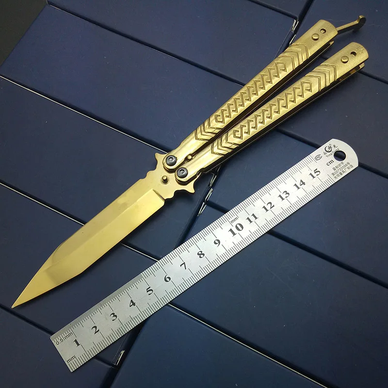 Product Name: Składane ostrze noża noże kieszonkowe piosenka Bali motyl w nożu bez krawędzi Unsharpened tęczy złota tytanu szkolenia nóż dla człowieka