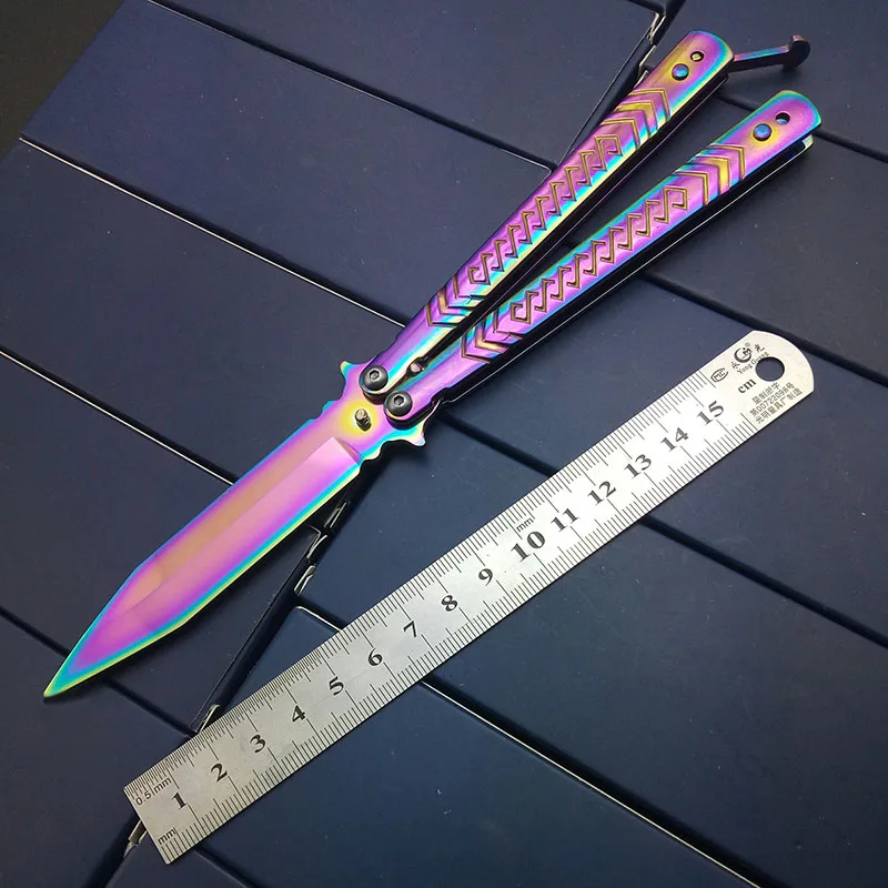 Special Offer Składane ostrze noża noże kieszonkowe piosenka Bali motyl w nożu bez krawędzi Unsharpened tęczy złota tytanu szkolenia nóż dla człowieka Discount 30% Today!