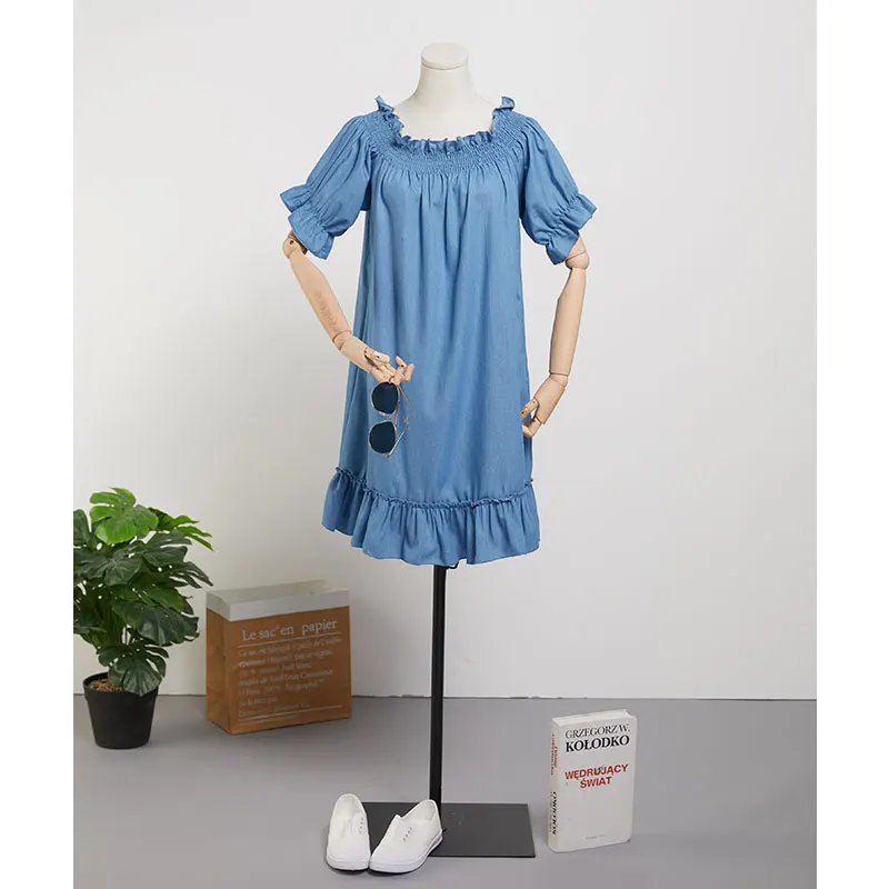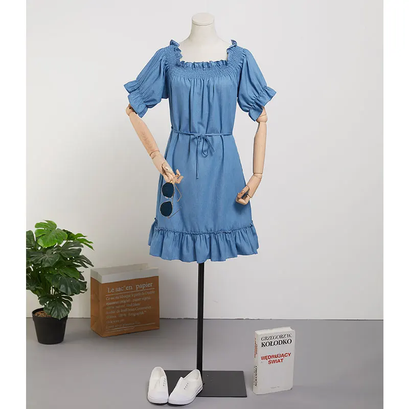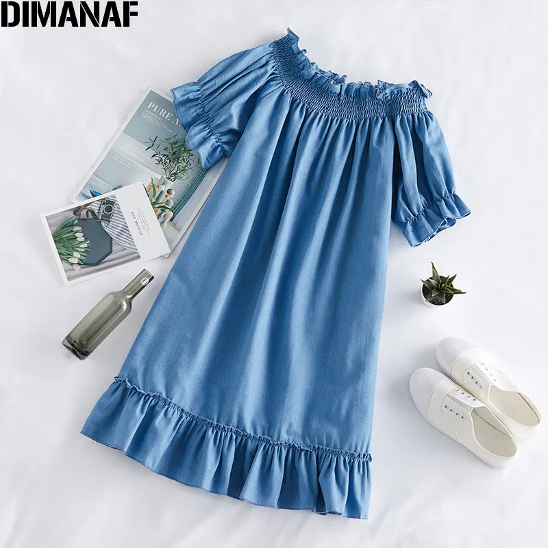 Special Offer DIMANAF 2020 sukienka damska plus size lato w stylu Sexy niebieski Slash Denim kobiet pani Patchwork bawełna Casual luźny, typu oversize 4XL Discount 32% Today!