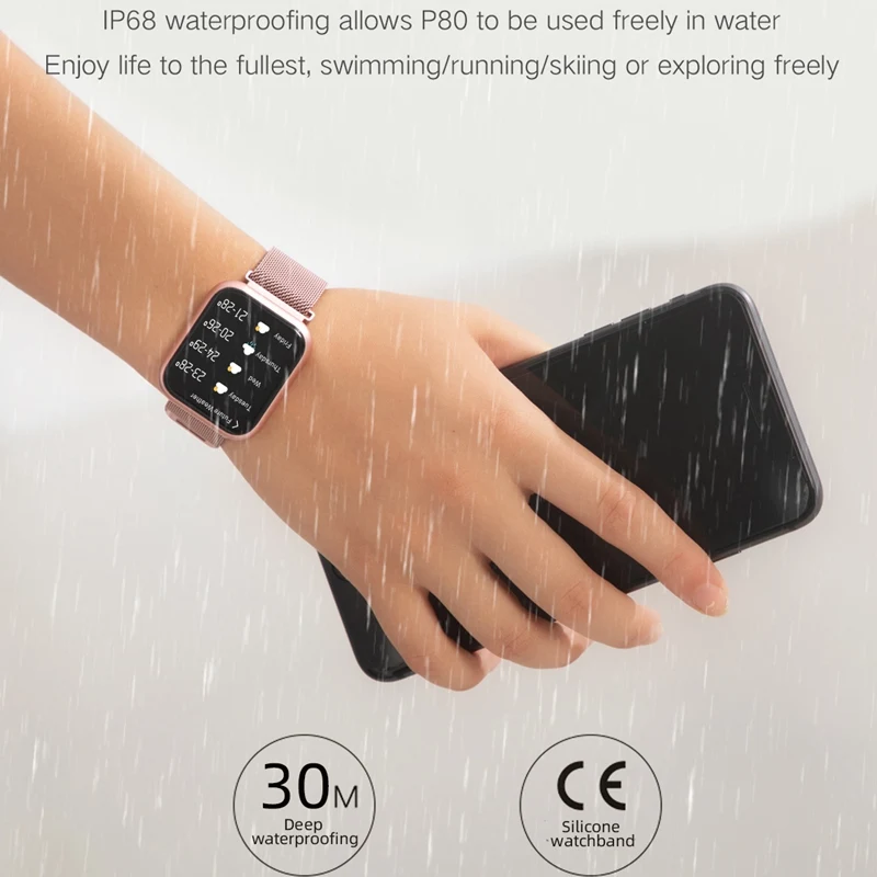 Product Name: 696 P70 ulepszona wersja P80 inteligentny zegarek kobiety IP68 wodoodporny smartwatch monitorujący tętno ciśnienie krwi dla IPhone Samsung Huawei