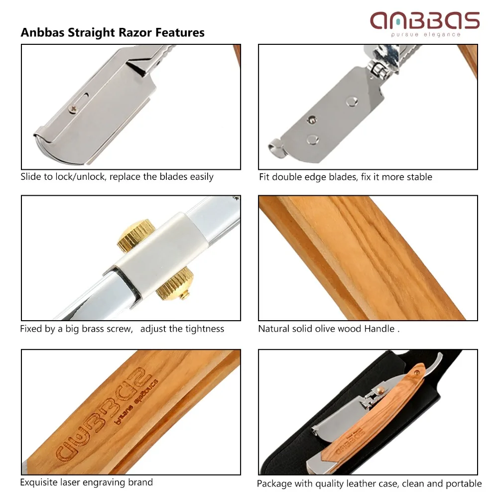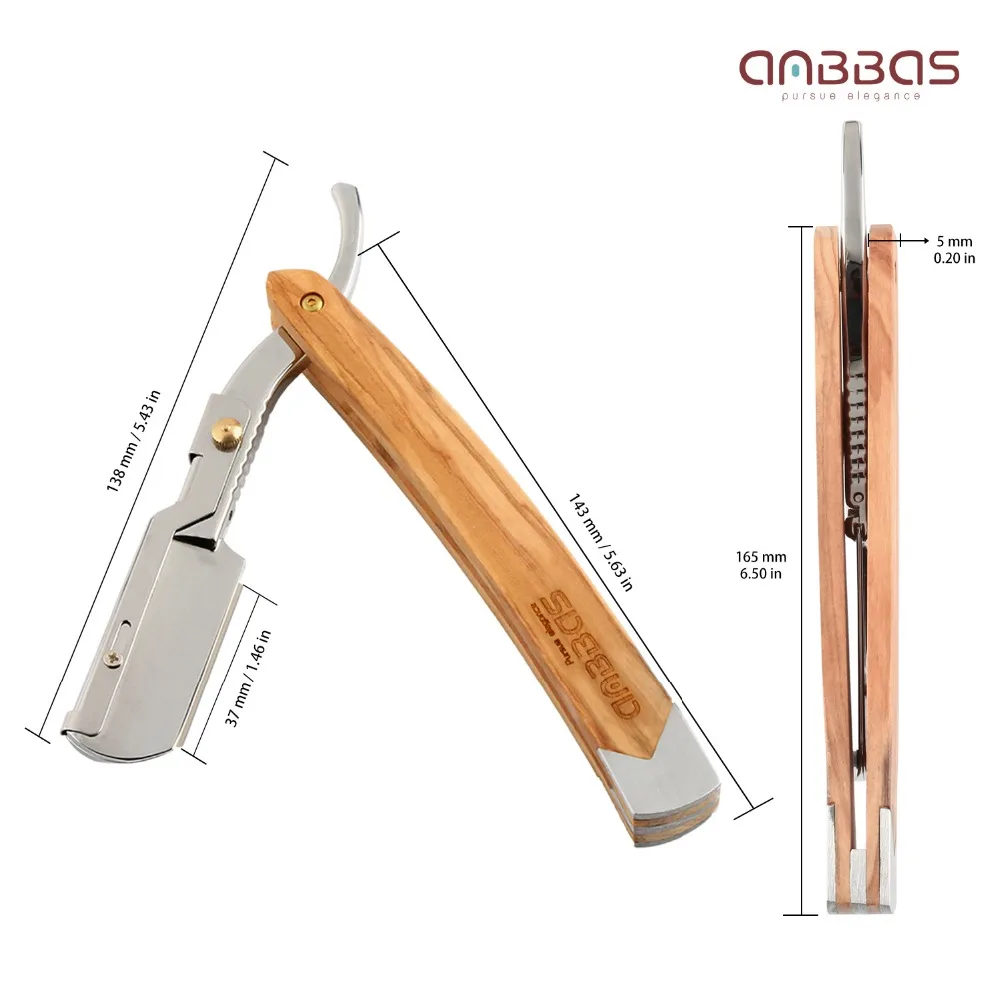 Special Offer Krawędź prosta maszynka do golenia, Anbbas składana maszynka do golenia z litego drewna oliwkowego czarna, wysoka jakość sztuczne skórzane etui Discount 40% Today!