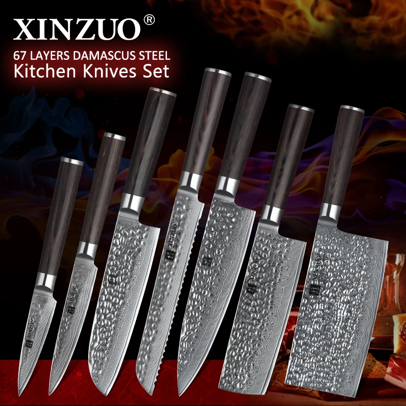 Product Name: XINZUO 7 sztuk zestaw noży kuchennych ostrza ze stali nierdzewnej damaszek VG10 zestaw noży szefa kuchni Santoku narzędzie Paring narzędzia kuchenne kuchnia