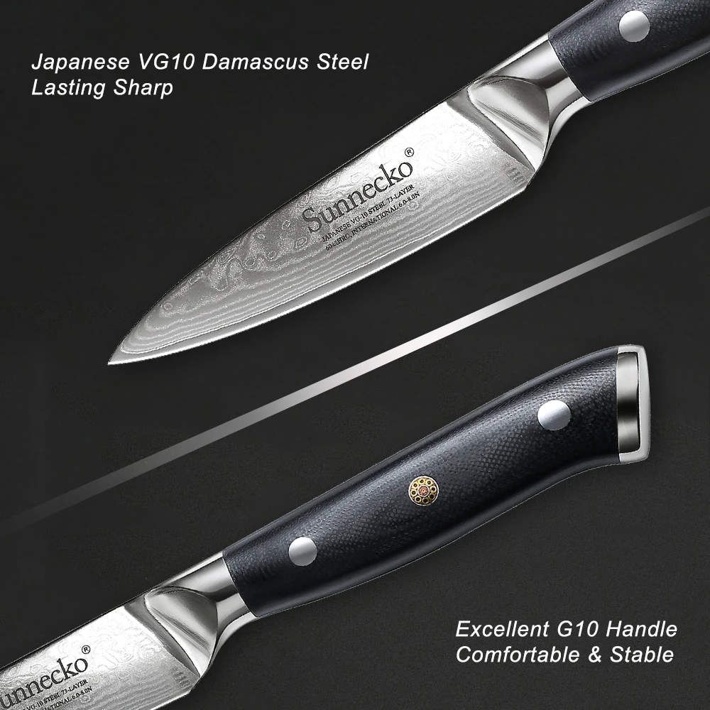 Product Name: Sunnecko 3.5 \"calowy Paring nóż szefa kuchni japoński damaszek VG10 stal Razor ostry nóż G10 uchwyt Chef krajalnica do owoców narzędzia
