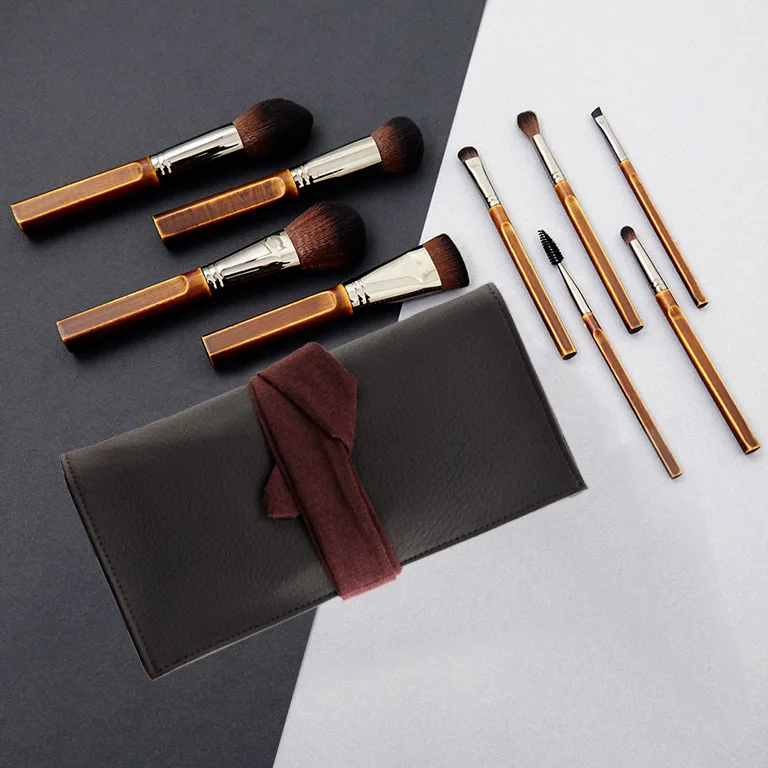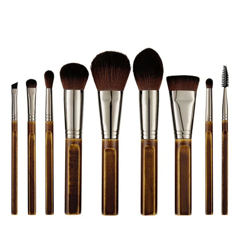Special Offer Luksusowe Vintage 9 sztuk zestaw pędzli do makijażu naturalnego drewna Powder Blush Bronzer Blender Eyeshadow zestaw narzędzi do makijażu z torbą Discount 17% Today!