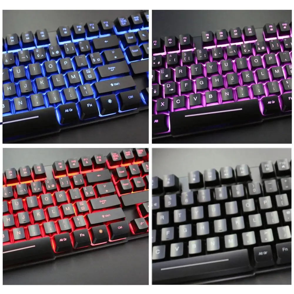 Product Name: Rii RK100 3 kolor LED USB przewodowa francuski (Azerty) mysz do gier klawiatura mechaniczna uczucie (czerwony, niebieski, fioletowy)