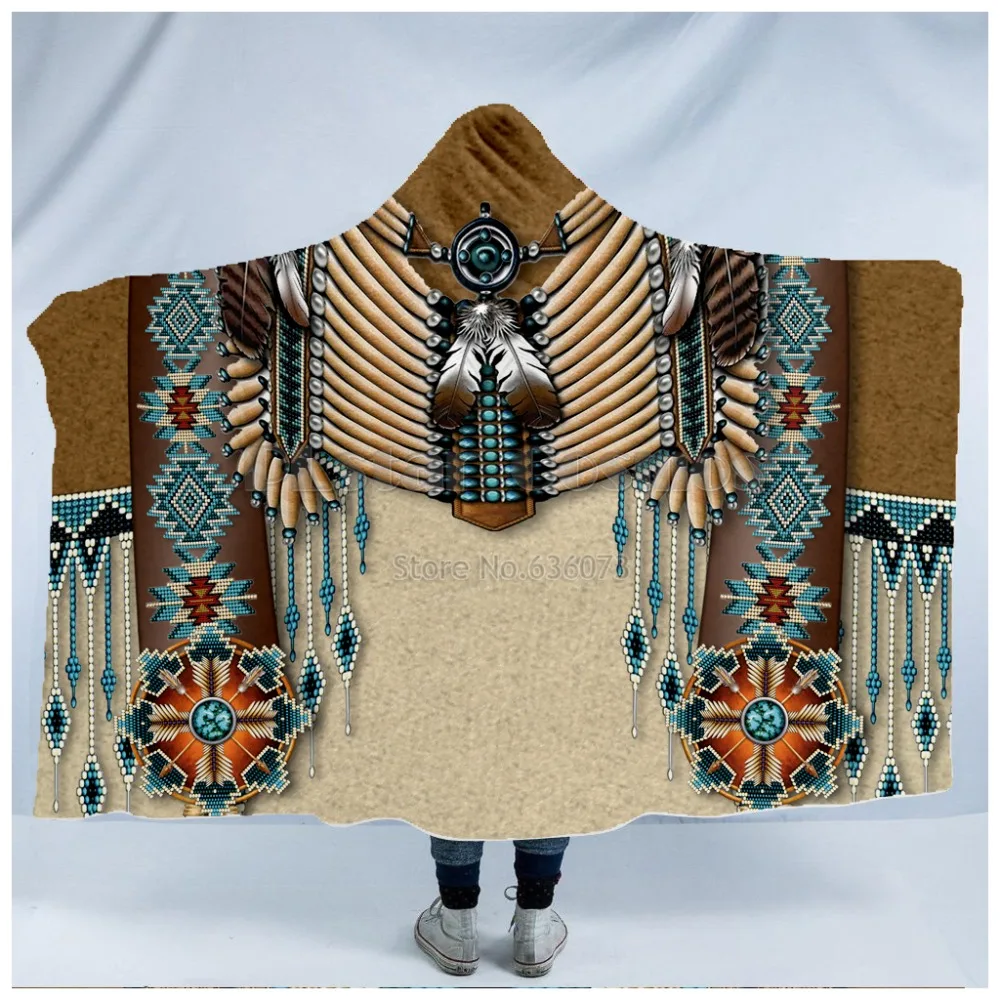 Product Name: Plstar cosmos niedźwiedź Totem natywny indyjski koc z kapturem 3D pełny nadruk poręczny koc dorośli mężczyźni kobiety style 9
