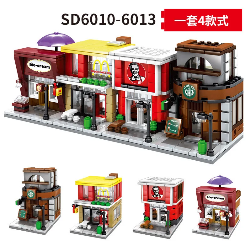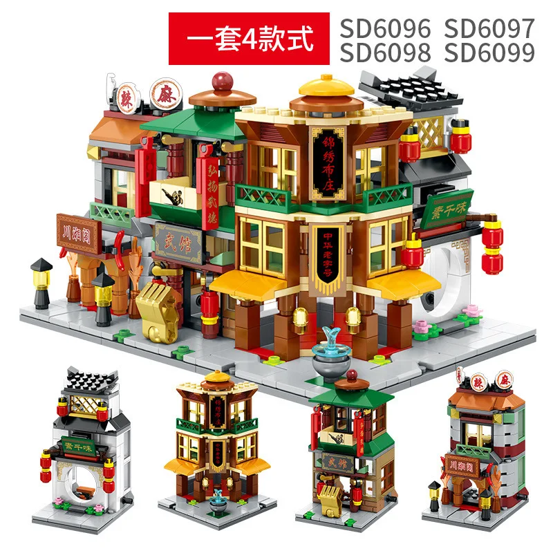 Product Name: 4 w 1 bloki Mini sklep uliczny chiński styl Chinatown cegły budowlane zabawki śliczne mikro sklep Model kompatybilny legoingery City