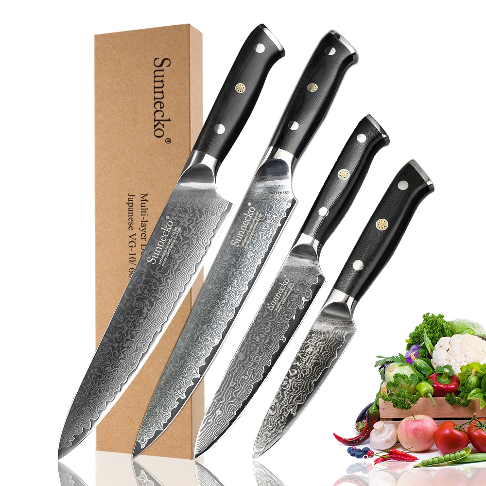Special Offer SUNNECKO 4 sztuk zestaw noży kuchennych Chef krojenie narzędzie nóż do parowania Damascus Steel japoński VG10 ostrze G10 uchwyt narzędzia kuchenne Discount 51% Today!
