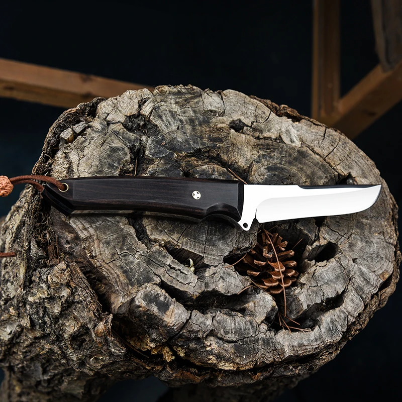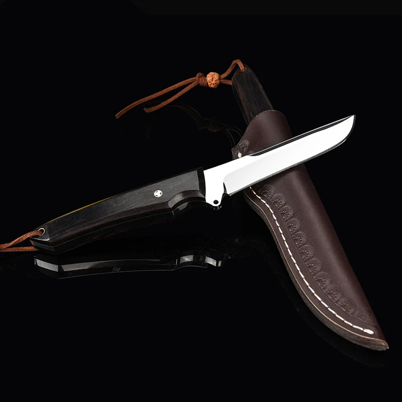 Product Name: CIMA nóż myśliwski survival, drzewo sandałowe rękojeść z drewna 9cr18mov stali nierdzewnej, skórzana osłona Super sharp lustro wykończenie