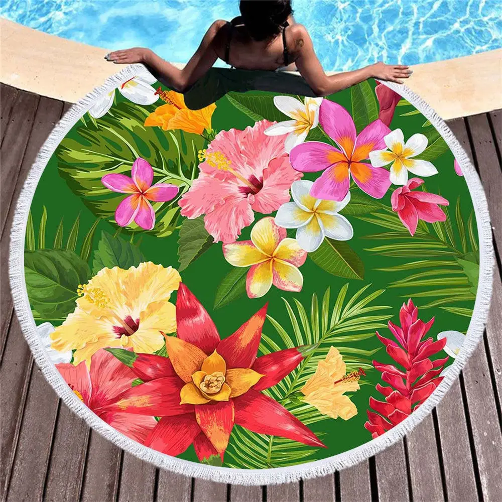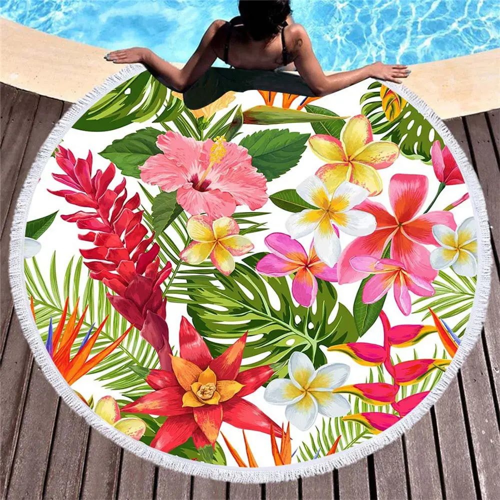 Special Offer Kolorowy kwiat okrągły ręcznik plażowy Flamingo drukowanie lato pływanie z mikrofibry ręcznik plażowy dorosłych dzieci koc piknikowy Discount 0% Today!