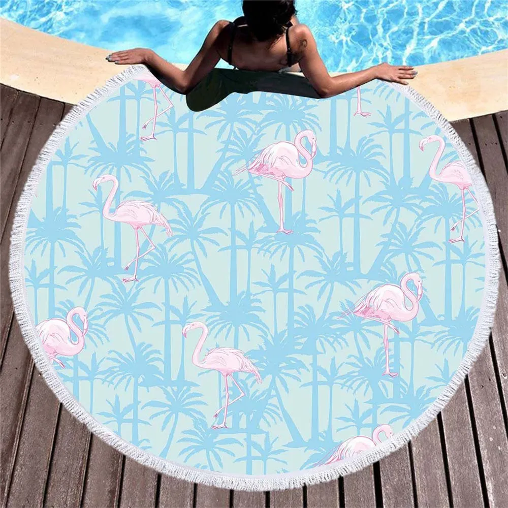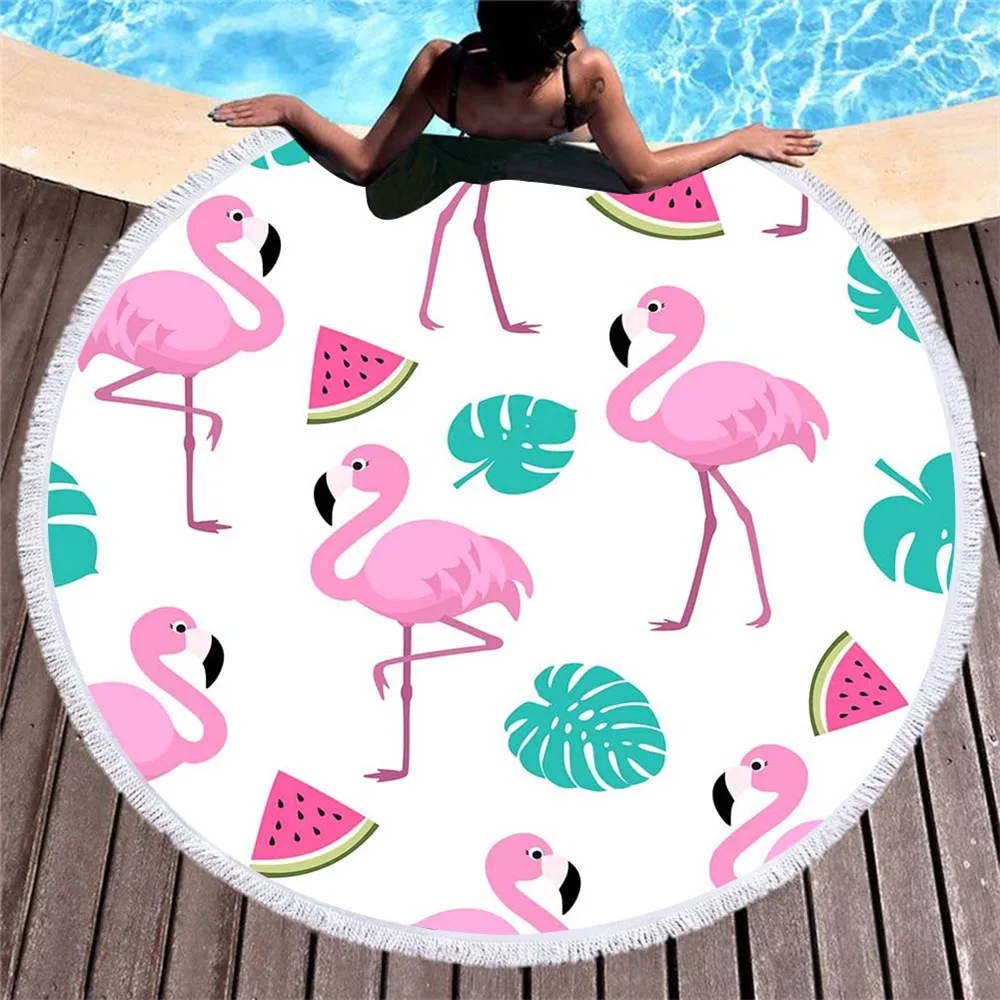 Product Name: Kolorowy kwiat okrągły ręcznik plażowy Flamingo drukowanie lato pływanie z mikrofibry ręcznik plażowy dorosłych dzieci koc piknikowy