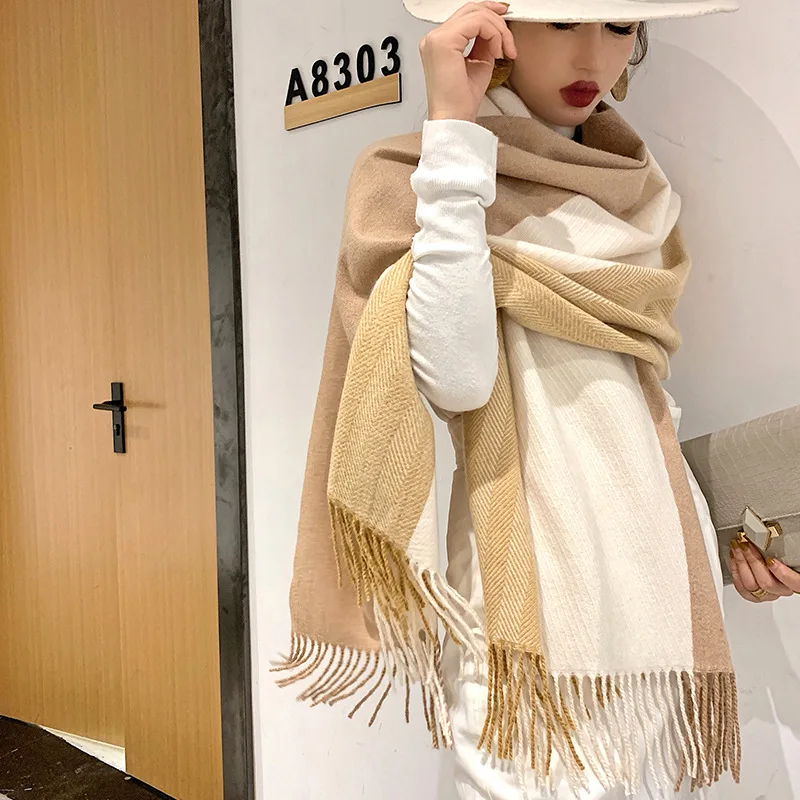 Product Name: Wełna Merino Patchwork kobieta zimowe szaliki szal Faux Cashmere kobieta koc hidżab szalik Warp Lady Poncho Pashmina kobieta Stole