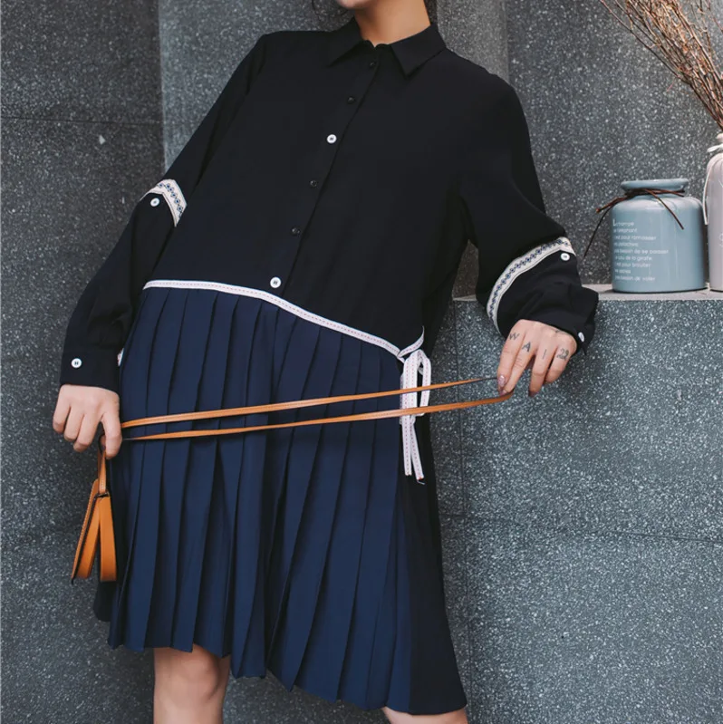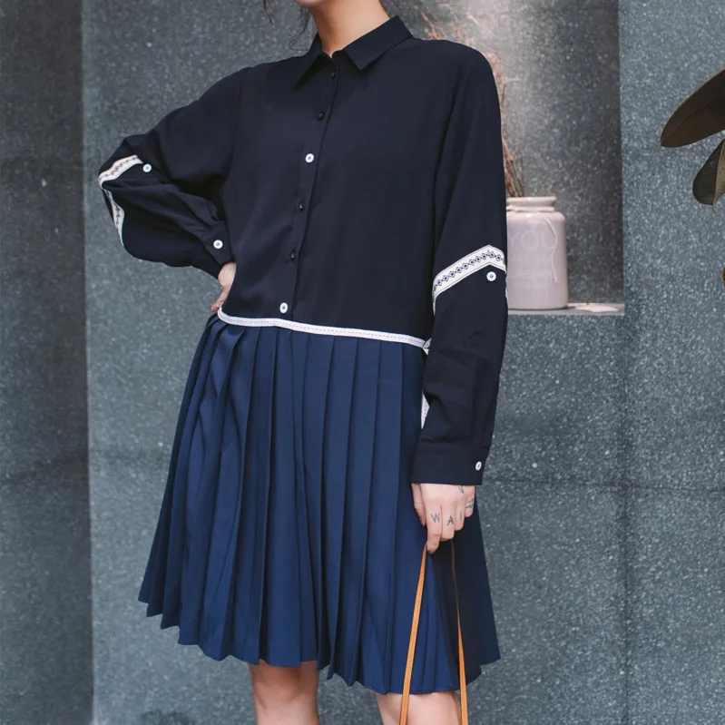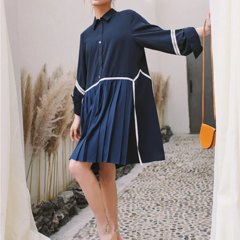 Product Name: 2020 LANMREM 2020 nowy skręcić w dół kołnierz pojedyncze łuszcz granatowy jednorzędowy plisowany koszula Dreses S XL kobiet WF93517XL