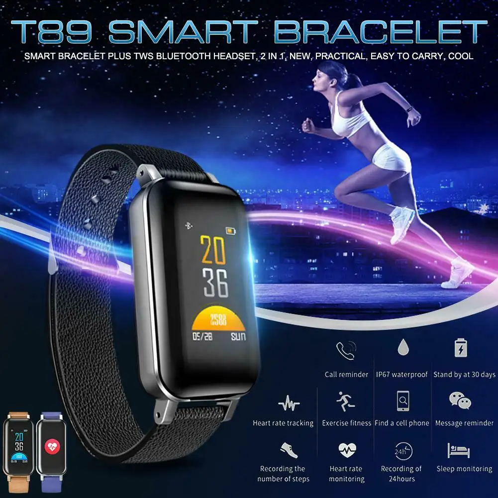 Product Name: Torntisc T89 podwójny Bluetooth 5.0 słuchawki inteligentna bransoletka tętno ciśnienie krwi Tracker inteligentny zegarek mężczyźni dla IOS telefon z systemem android