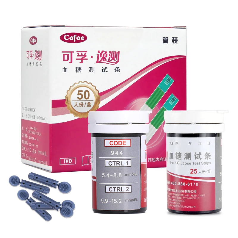 Special Offer Cofoe Yice 50 sztuk paski testowe i 50 sztuk krwi zbierać igły lancety tylko dla Cofoe Yice glukometr do pomiaru glukozy we krwi Monitor cukru Discount 30% Today!