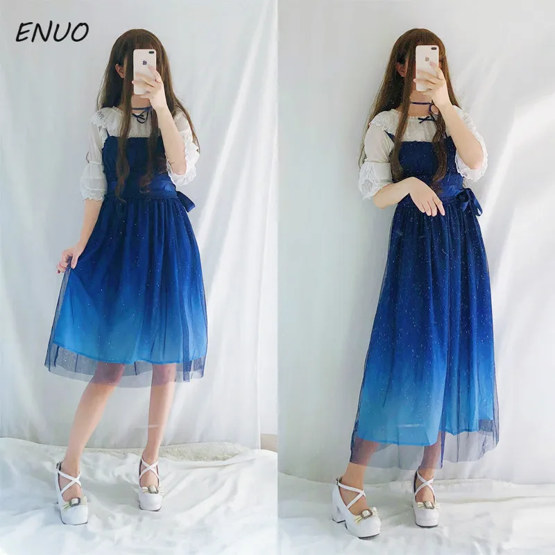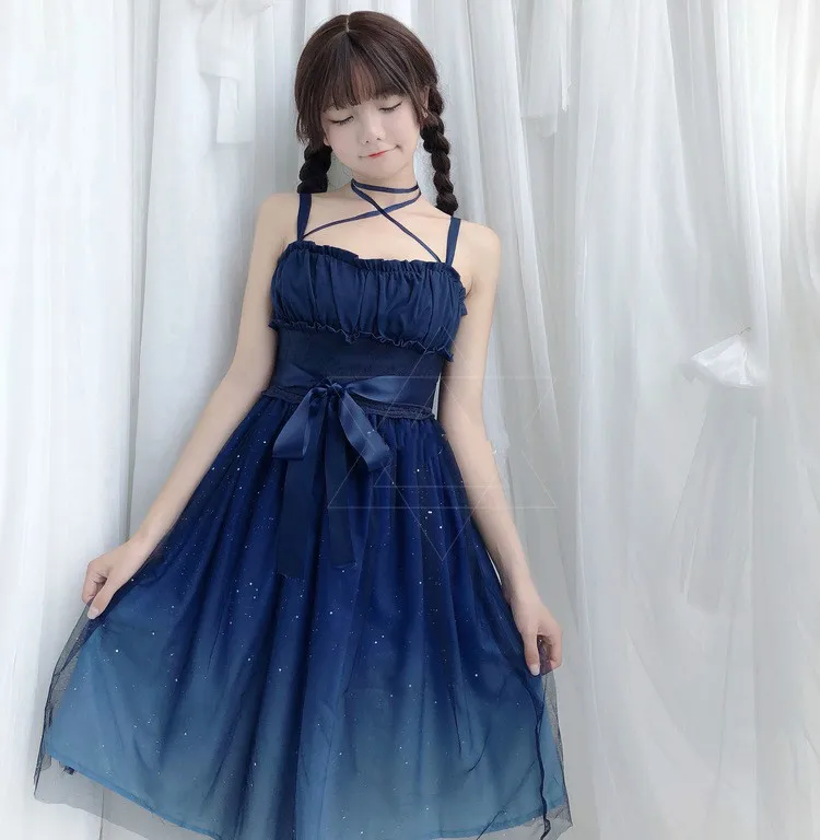 Special Offer JSK Shinning Stars sukienka lolita Gradient JSK Star niebieskie dziewczyny solidna przebranie koronkowa Ruched sukienka plisowana zestaw koszul Discount 32% Today!