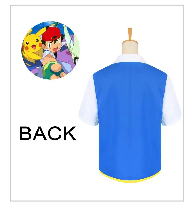 Product Name: Pokemon ash ketchum dzieci przebranie na karnawał niebieska kurtka + rękawiczki + kapelusz ash ketchum kostiumy Pokemon kostium dla dorosłych