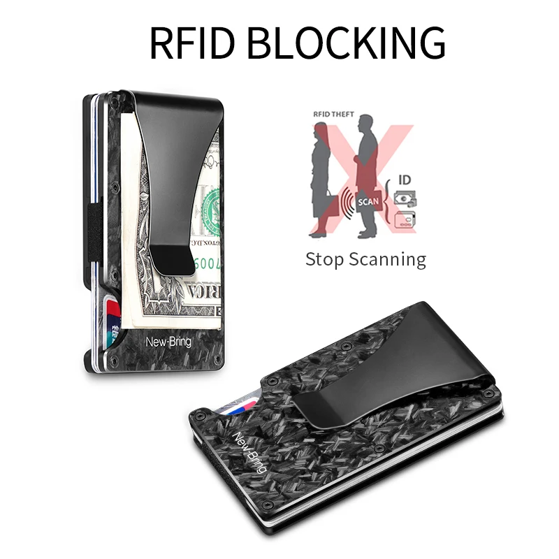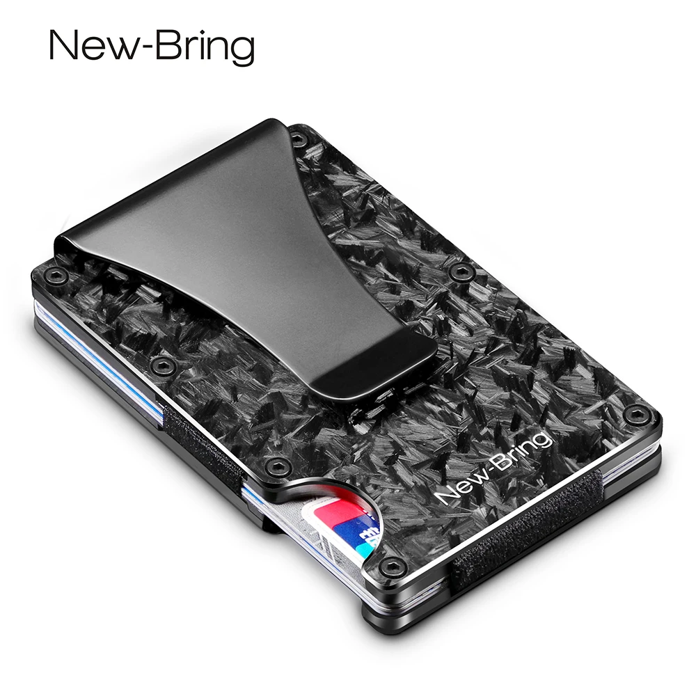 Product Name: NewBring Slim streszczenie tekstury futerał na karty z włókna węglowego ID karty kredytowej RFID blokowanie portfel przednia kieszeń prezent EDC minimalistyczny