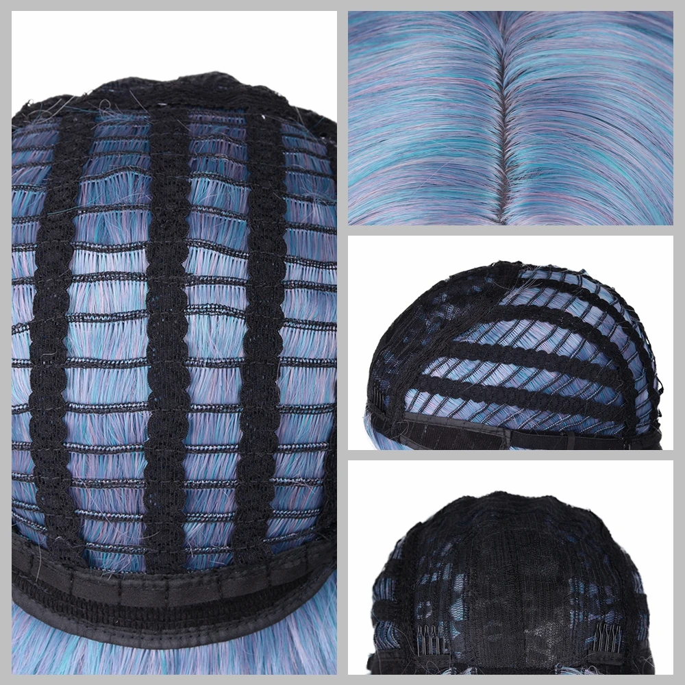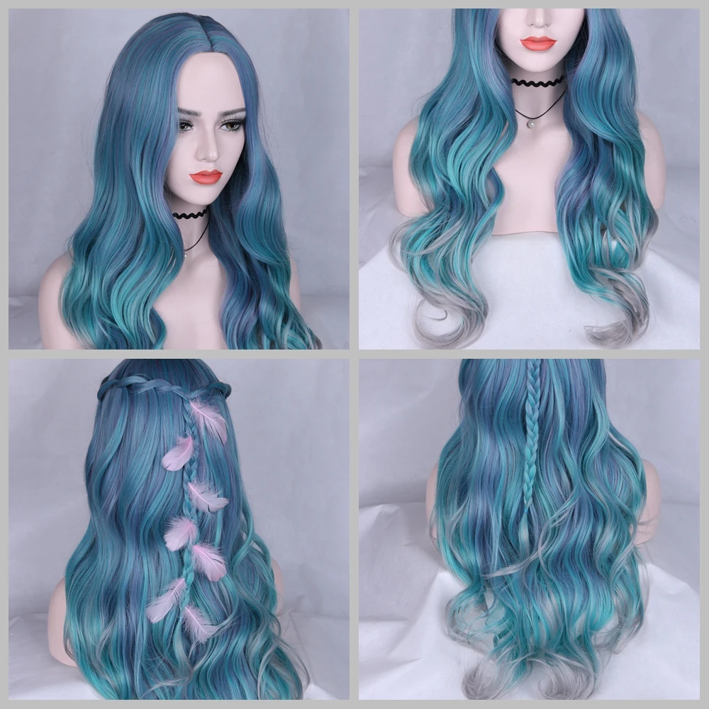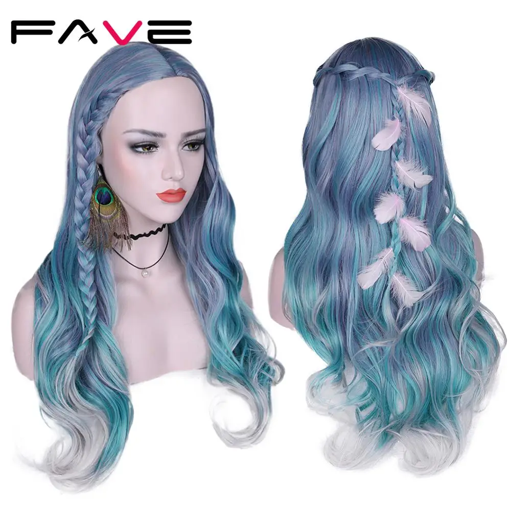 Product Name: FAVE długie faliste włosy mieszane fioletowy niebieski zielony jasnoszary żaroodporne peruki syntetyczne dla kobiet środkowa część impreza z okazji halloween peruki