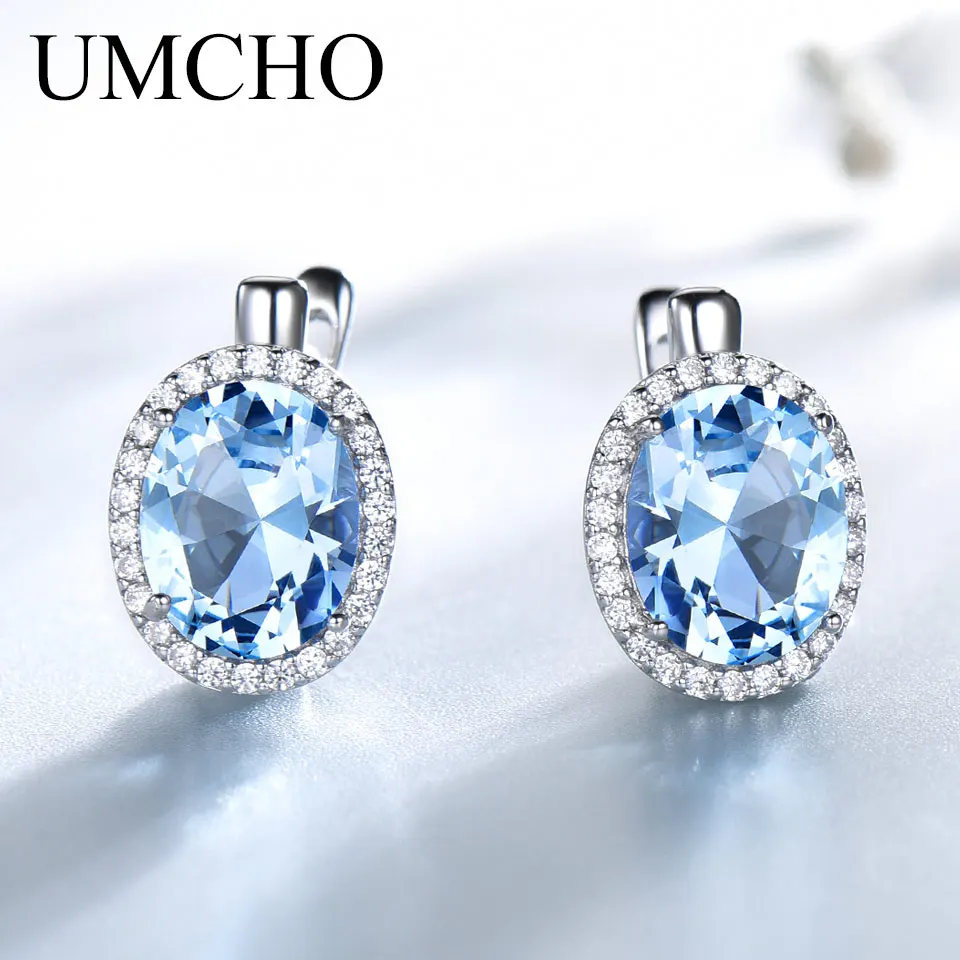 Product Name: UMCHO Nano Sky niebieski topaz klipsy z kamieni szlachetnych dla kobiet oryginalne 925 srebro kolczyki dla kobiet romantyczna biżuteria