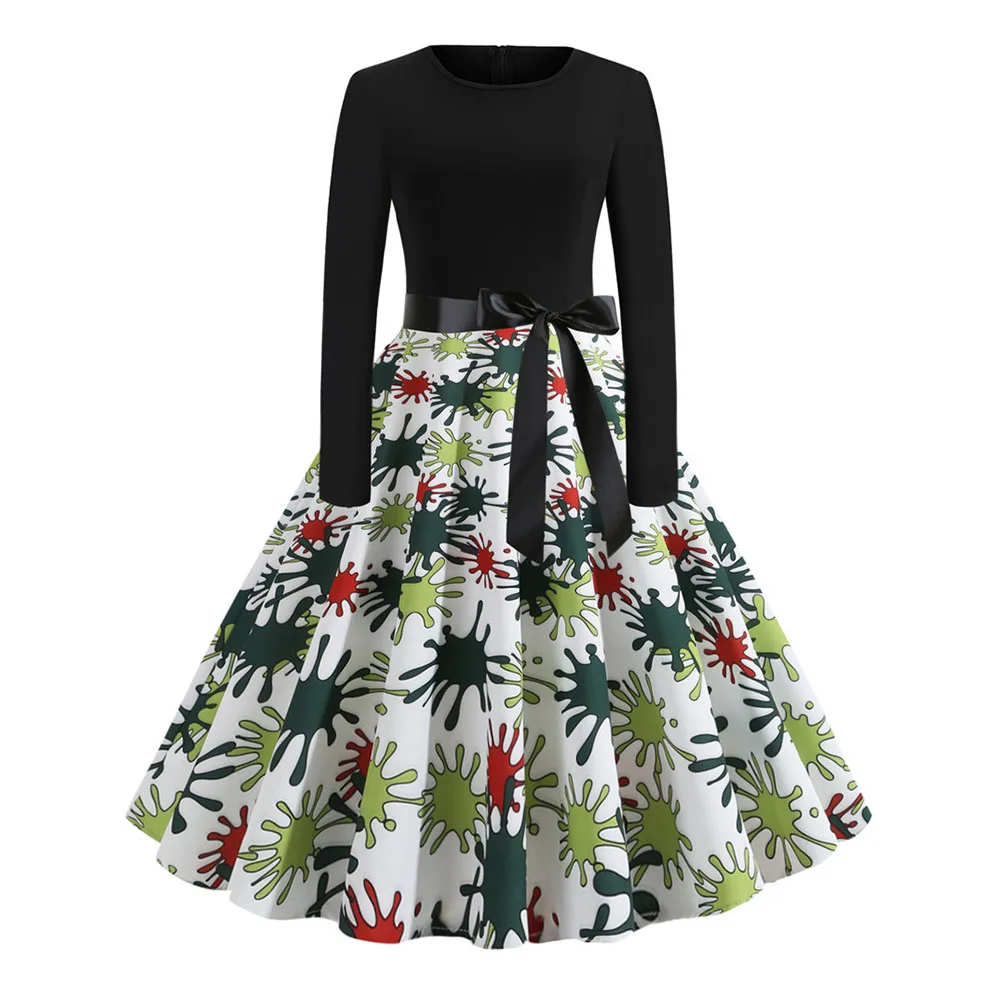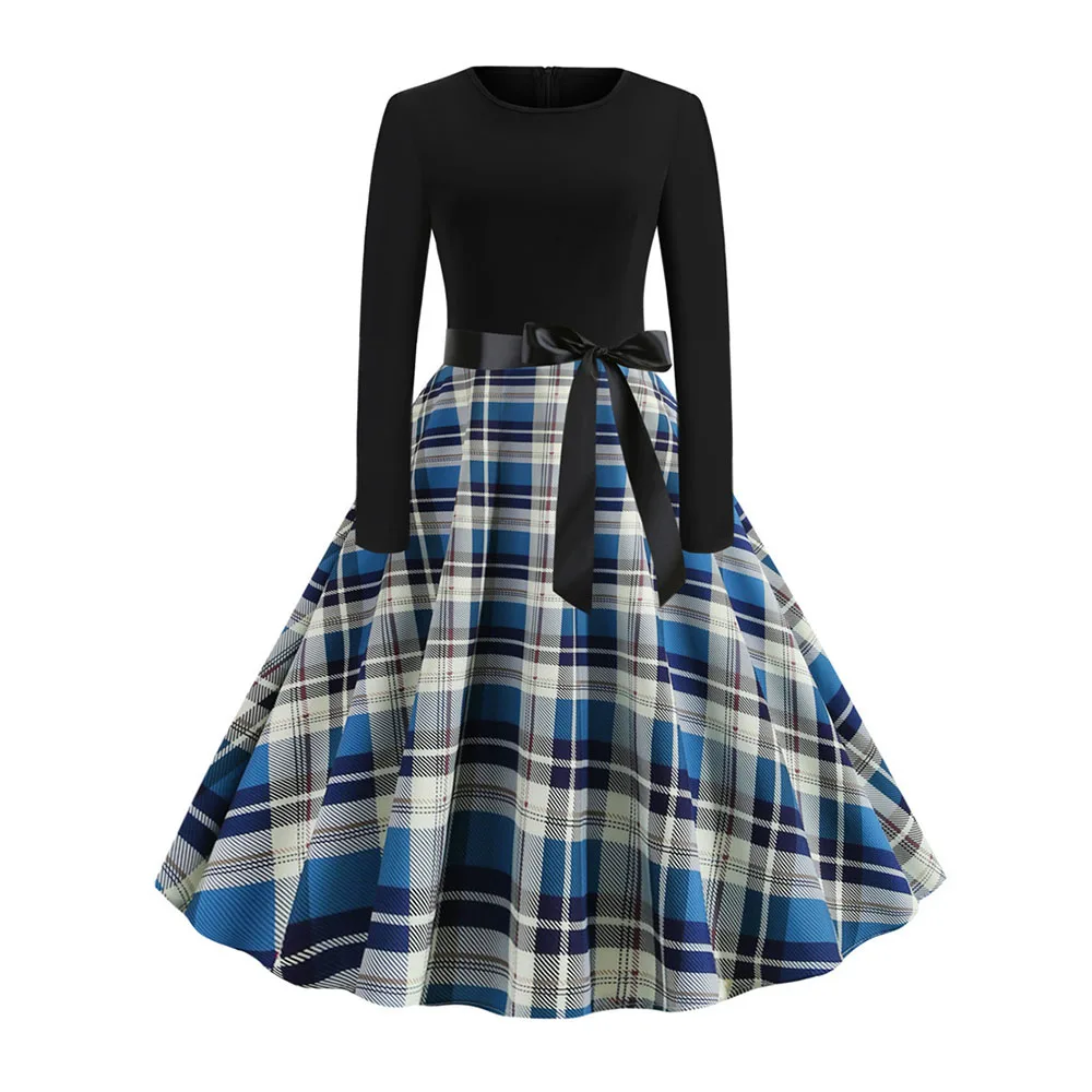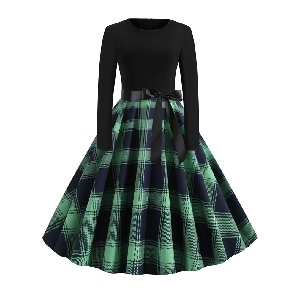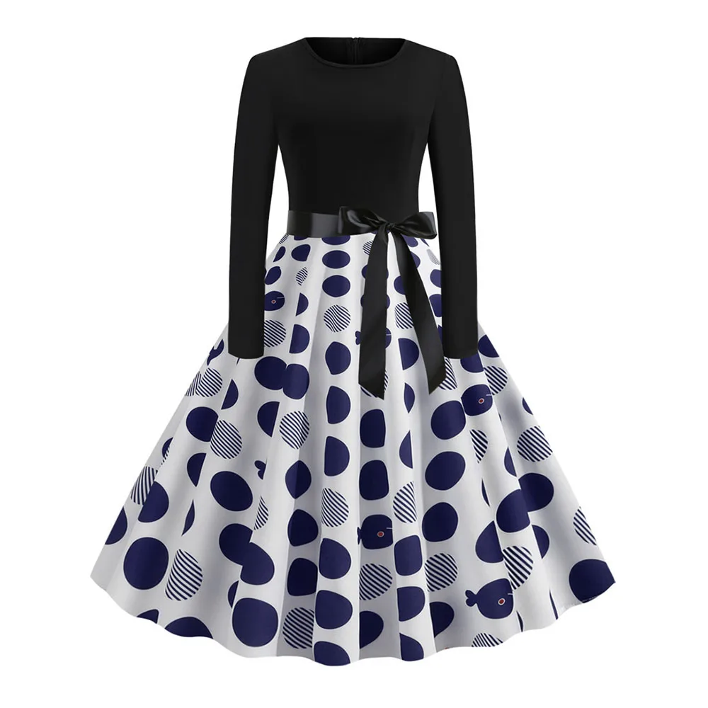 Product Name: Sisjuly Fall damskie Vintage niebieskie zielone sukienki graficzne z długim rękawem do kolan kropki Retro sukienki jesień Lady Party Dress