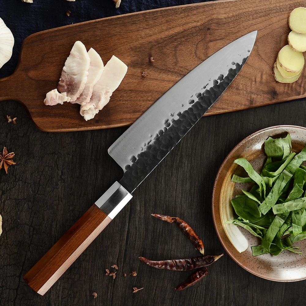 Product Name: Adamaszku ręcznie ze stali nierdzewnej Chef noże wysokiej ze stali węglowej kute nóż kuchenny bardzo ostre ostrze drewna uchwyt 8 cal krajalnica