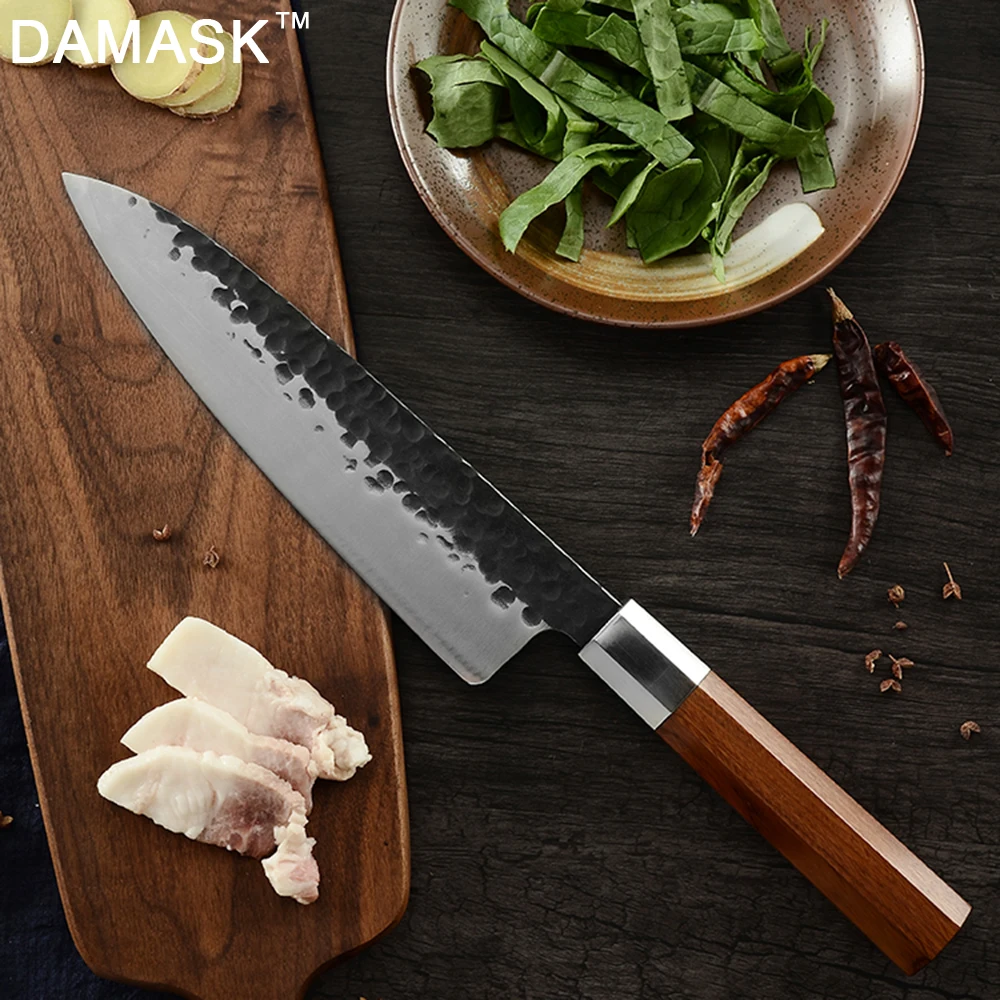 Special Offer Adamaszku ręcznie ze stali nierdzewnej Chef noże wysokiej ze stali węglowej kute nóż kuchenny bardzo ostre ostrze drewna uchwyt 8 cal krajalnica Discount 72% Today!