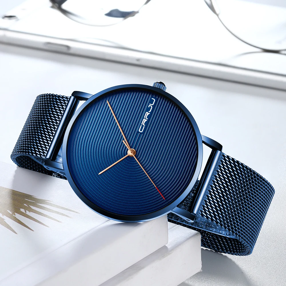 Product Name: CRRJU luksusowy męski zegarek moda minimalistyczny niebieski Ultra cienka siatka pasek zegarka Casual wodoodporny Sport mężczyźni zegarek prezent dla mężczyzn
