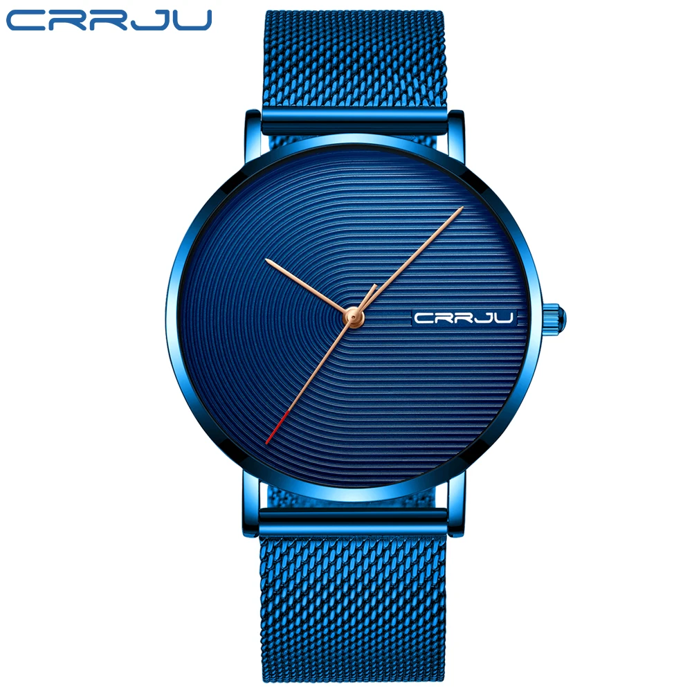 Special Offer CRRJU luksusowy męski zegarek moda minimalistyczny niebieski Ultra cienka siatka pasek zegarka Casual wodoodporny Sport mężczyźni zegarek prezent dla mężczyzn Discount 90% Today!