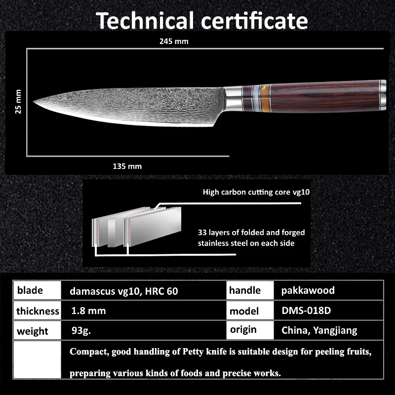 Product Name: 5.3 nóż introligatorski damasceński nóż kuchenny japoński VG10 ostrze ze stali damasceńskiej stalowe narzędzia do parowania owoców z pudełkiem Grandsharp