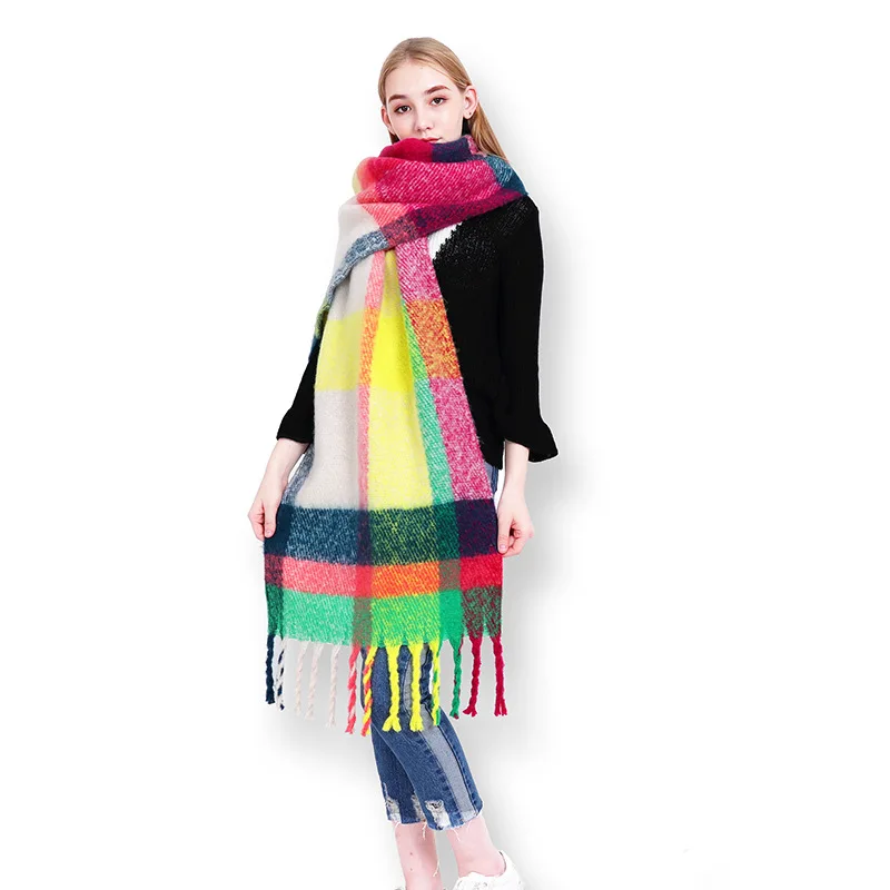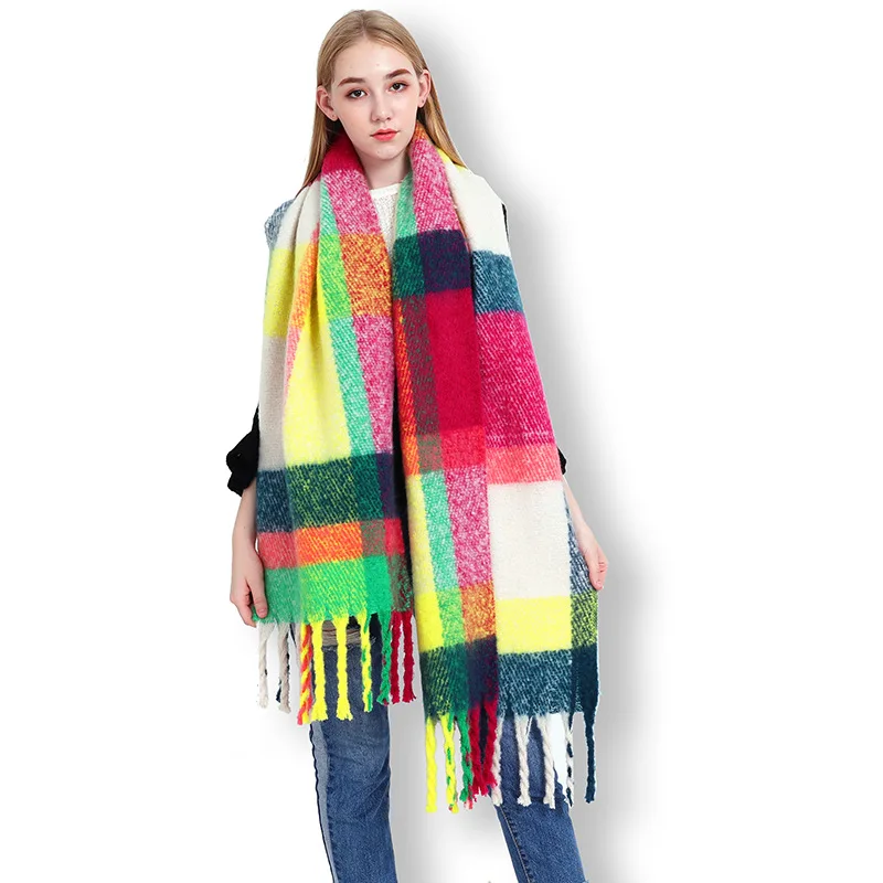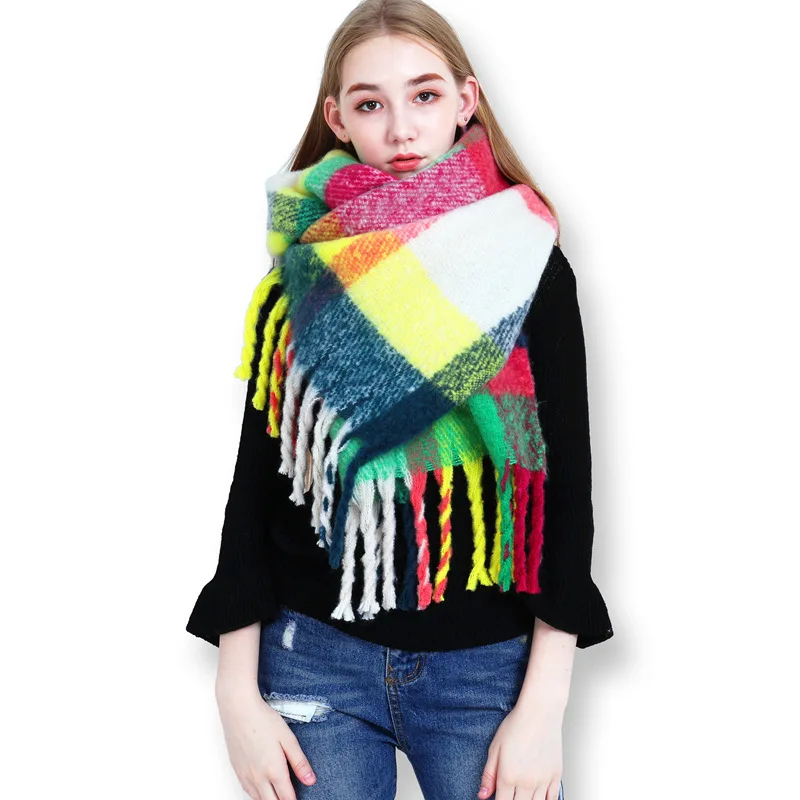 Product Name: Wielokolorowy zimowy kobiety kaszmirowy chuncky szalik sprawdź szal koc oversize projektant okłady foulard femme LL181047