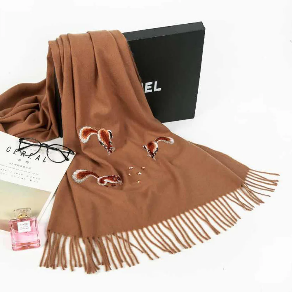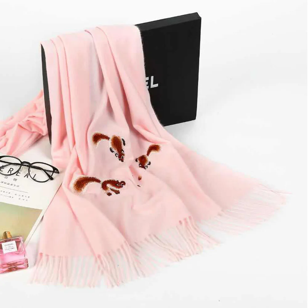 Product Name: YOUHAN 2018 luksusowy zimowy szalik kobiety ciepłe Cashmere wiewiórka haft szaliki szal koc do owijania hidżab szalik Drop Shipping